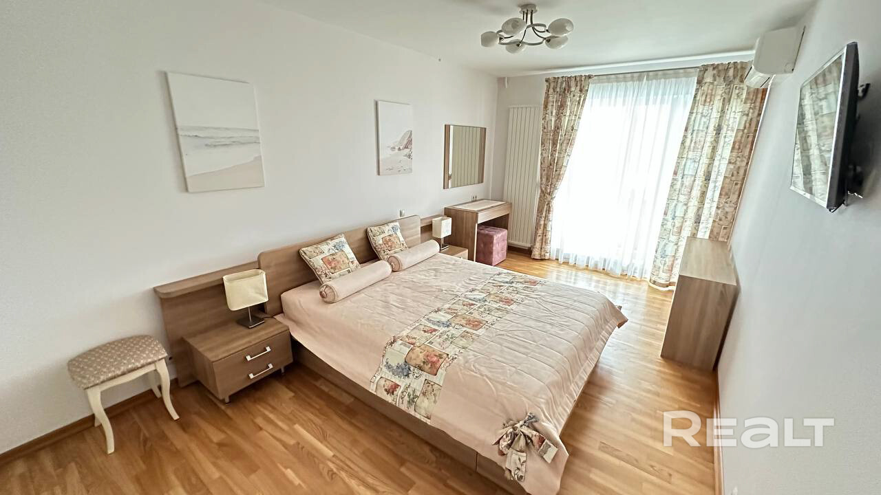 4-х комнатная квартира на ул. Сторожовская, 8. 6-й этаж 12-ти этажного кирпичного дома. Дом расположен в центре города на берегу реки Свислочь, рядом большой парк и прогулочная набережная, торговые центры, кафе, до метро 7 минут пешком. Площадь квартиры 110 м2. В квартире сделан косметический ремонт. Квартира очень светлая и уютная, на первом этаже большая гостиная с обеденным столом и барной стойкой, кухня отделяется дверями от гостиной, в ней духовка, посудомоечная машина, холодильник, телевизор, вытяжка. На 1 этаже есть еще ванная комната и встроенные шкафы. 2 этаж: может быть три спальни или 2 спальни и кабинет. В спальне и детской есть выход на большую застекленную лоджию. В кабинете диван раскладывается. В ванной комнате на 2 этаже есть душ. В каждой комнате есть кондиционер, встроенный шкаф, полы паркет. Вода в квартире фильтруется специальной системой фильтрации и смягчения воды. Есть необходимая посуда и много необходимых для жизни мелочей. При необходимости в пустую комнату хозяин поставит мебель. Коммунальные платежи оплачивает арендатор.