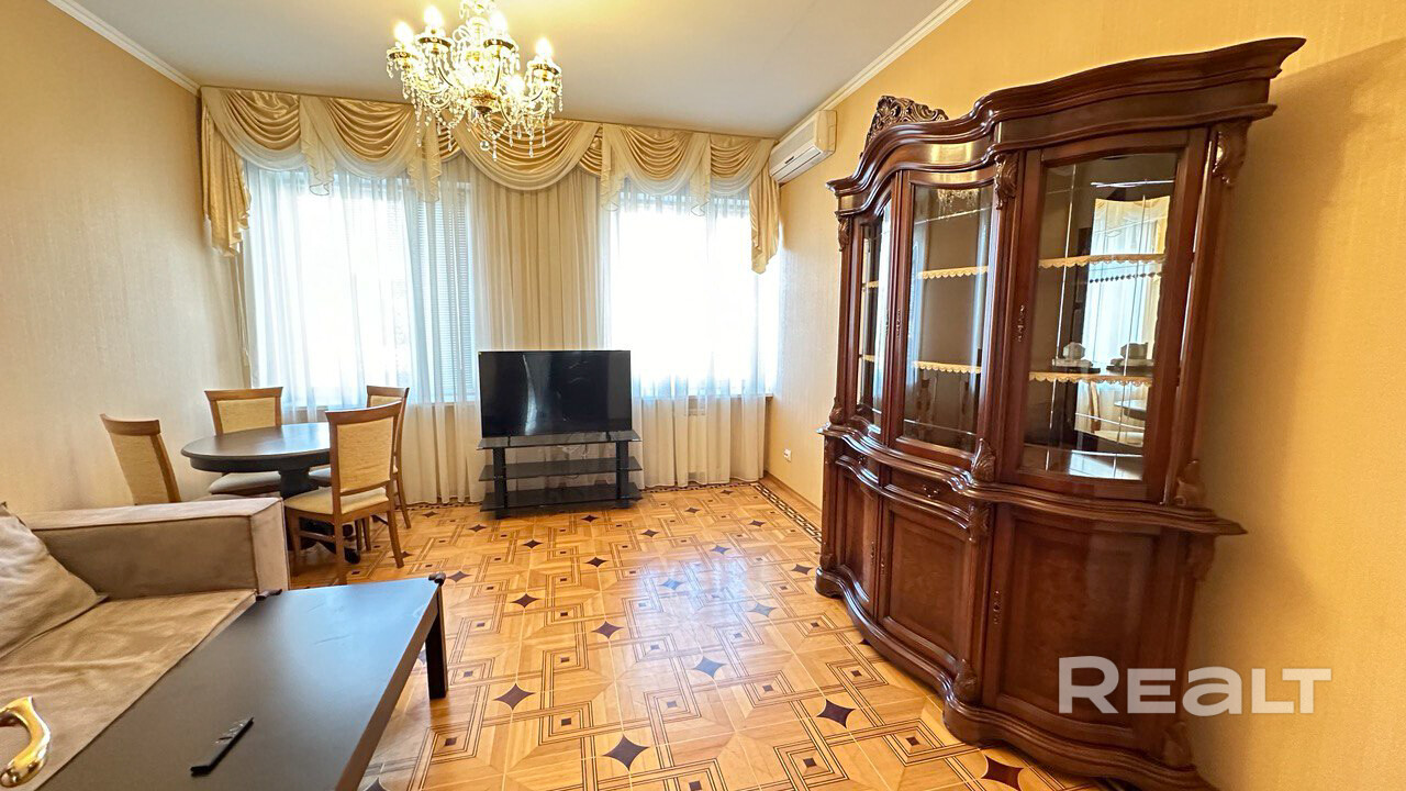 3-х комнатная квартира на ул. Гвардейская, 10, 7-й этаж 9-ти этажного блочного дома. Дом расположен в центре города, поблизости торговый центр Корона, Торговый центр Замок, спортивный центр и бассейн. Парк Победы, река Свислочь. Во дворе парковка под шлагбаумом. В доме автономное отопление, летом не отключают горячую воду. Площадь квартиры 78 м2. В квартире 2 спальни и гостиная. По запросу арендаторов детскую комнату хозяева могут переоборудовать под вторую спальню, установить двуспальную кровать и тумбочки. В квартире 2 застекленных лоджии, кондиционеры, шкафы-купе, высокоскоростной интернет. Отдельная кухня оборудована холодильником, посудомоечной машиной, духовкой, вытяжкой, варочный поверхностью, электрочайником, есть посуда. В ванной комнате большая ванна и стиральная машина. В гостиной диван раскладывается. Коммунальные платежи оплачивает арендатор.