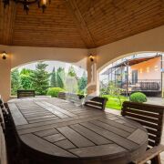 На участке распложена беседка 37м2 из г/с блоком с мангальной зоной и сарай 12м2. Выполнен ландшафтный дизайн с системой автополива и освещением.