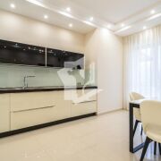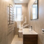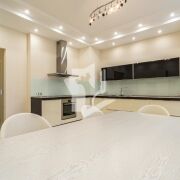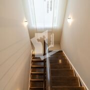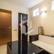 На первом этаже расположены кухня (24,6м2): кухонный гарнитур со встроенной техникой(духовой шкаф, индукционная плита, вытяжка, посудомоечная машина, свч-печь и кофемашина, морозильник и холодильник) производства Германия- Liebherr, Bosch), просторная гостиная (26,8м2), оборудованная камином и кондиционером, полностью оборудованная сауна (сама парная3,8м2 +комната отдыха 9,3м2 +душ + туалет) санузел, топочная. Высота потолков на первом этаже-2,85