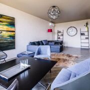 Современный ремонт, полностью укомплектована всем необходимым для комфортного проживания : кондиционер, посудомоечная машина, бойлер , 2 больших ЖКИ телевизора, вся бытовая техника. Есть место в подземном паркинге ( в паркинге установлены зарядные станции для электрических автомобилей).