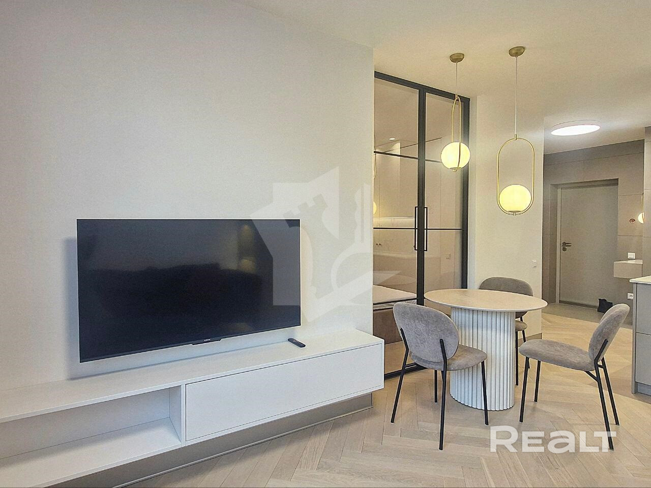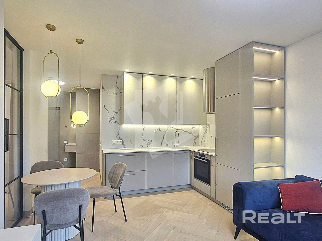 Объединённая кухня-гостиная с видом на Минск Мир – место, где приятно проводить время и встречать гостей.
