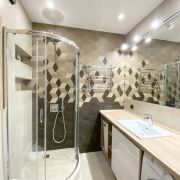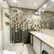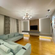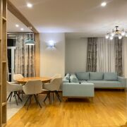 Планировка: 3 раздельные комнаты(спальня, детская, рабочий кабинет)+ кухня-гостиная, 2 санузла с душевой кабиной и ванной. В квартире сделан качественный ремонт с использованием натуральных материалов, что создает атмосферу уюта и комфорта.