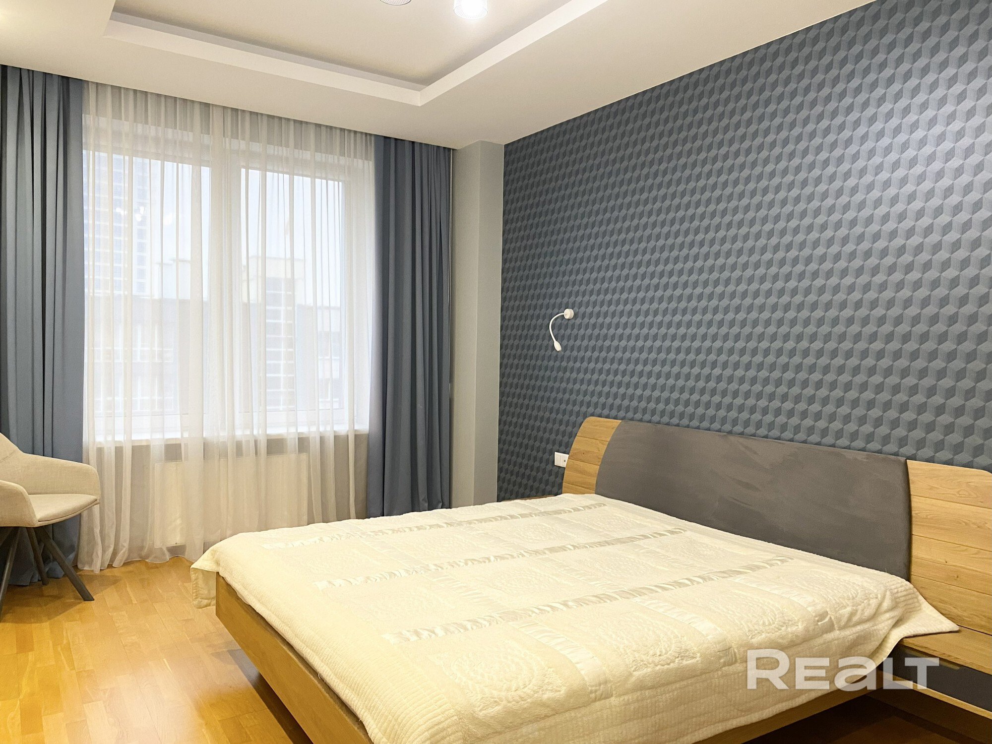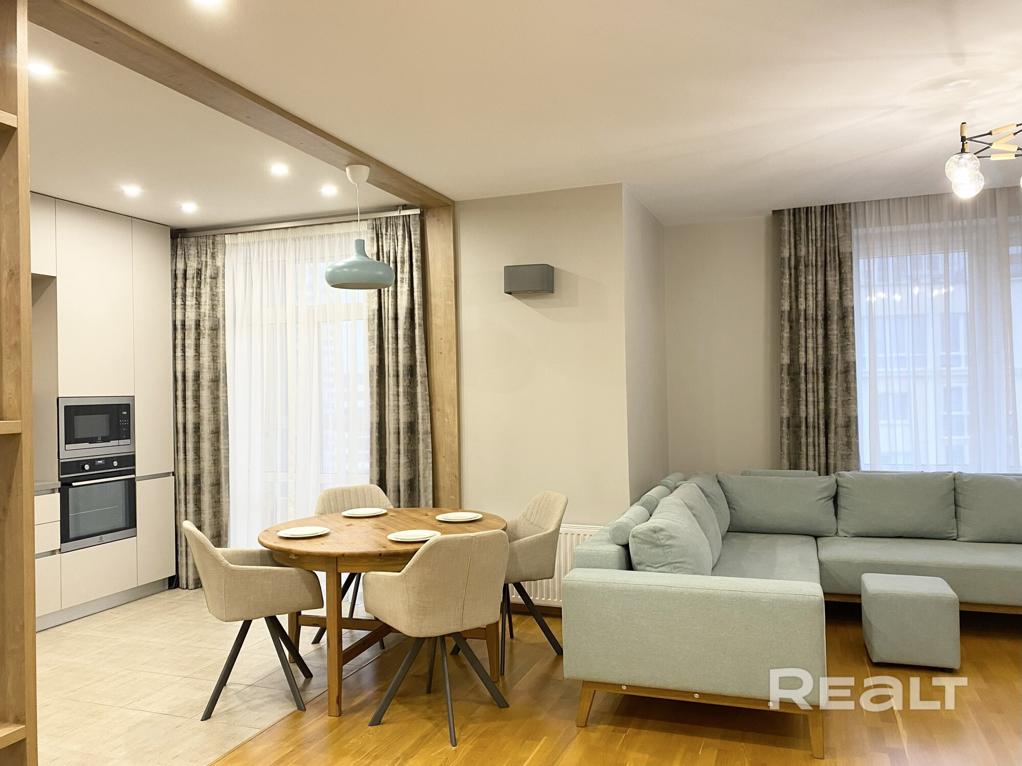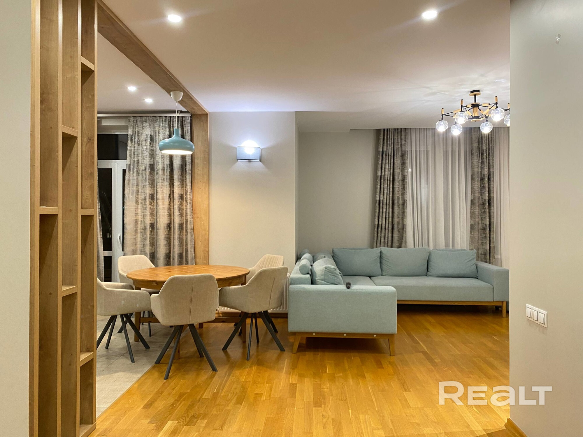 Сдается в аренду современная 4-комнатная квартира на последнем этаже в ЖК «Маяк Минска» по адресу: ул. Петра Мстиславца, д.4.