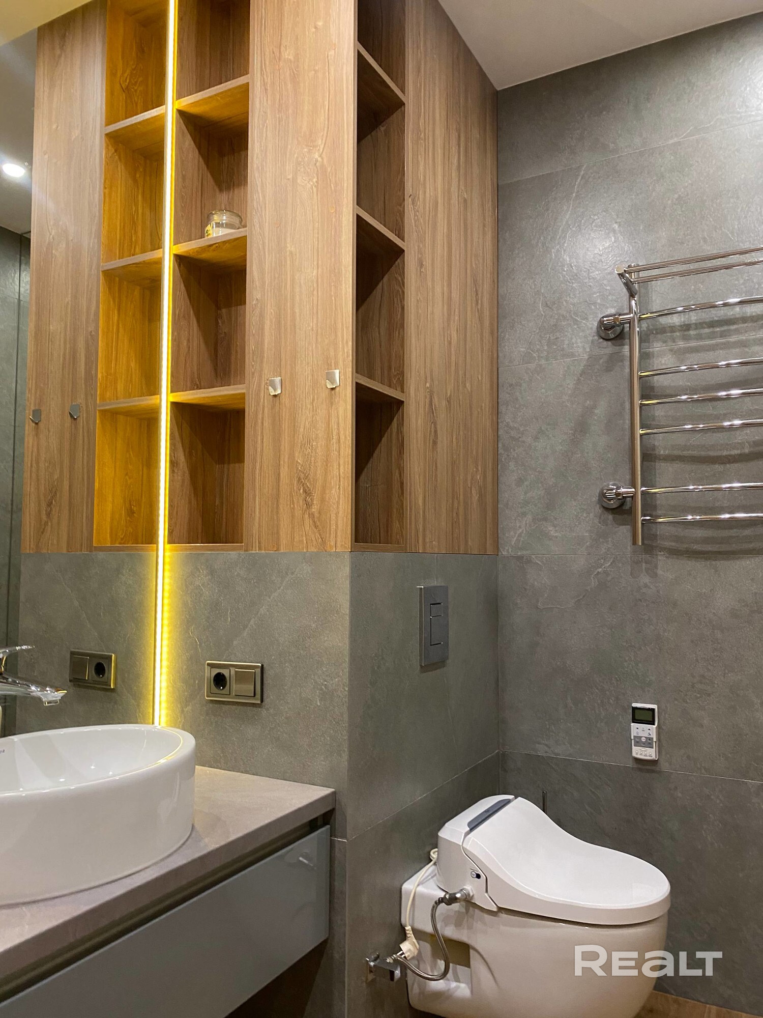 Два санузла, что создает дополнительный комфорт! Множество систем для хранения вещей: гардеробная в спальне, встроенные системы хранения в каждой комнате, 2 лоджии.