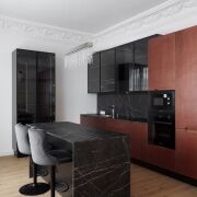Общий стиль интерьера современный с элиментами классики, сочетающий функциональность и роскошь.