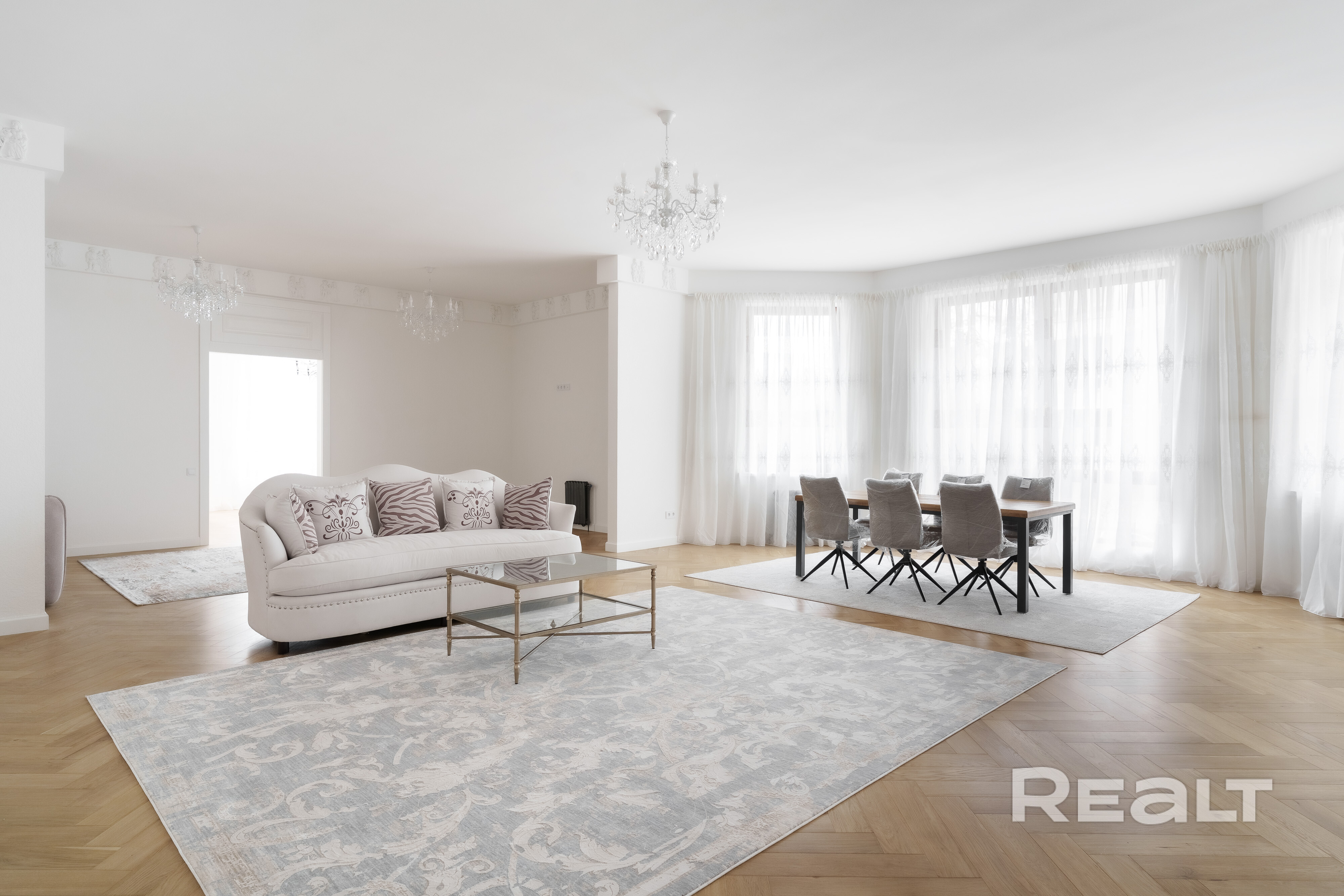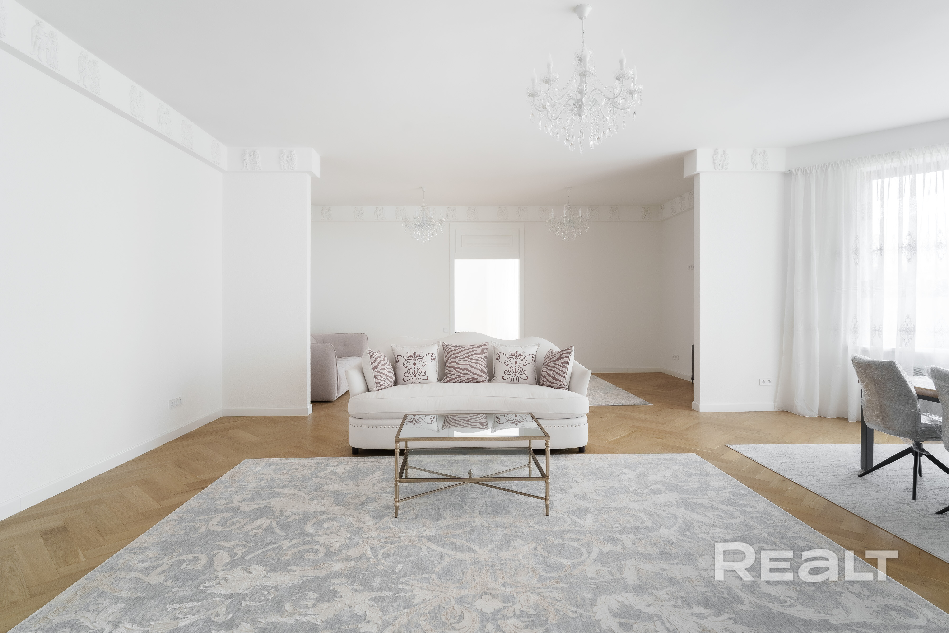 Пространство выглядит светлым, открытым и очень изысканным.