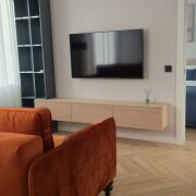 В квартире есть все необходимое для вашего комфортного проживания: кондиционер, посудомоечная машина, стиральная и сушильная машины, телевизор, духовой шкаф с функцией свч-печи, варочная панель, мелкая бытовая техника(пылесос, утюг, чайник). Новая техника и мебель. В квартире есть встроенные шкафы и вместительная гардеробная.