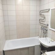 Три изолированные комнаты 17,7, 17.0 и 12,5 м.кв. Просторная кухня 10,2 м.кв.: кухонный гарнитур, холодильник, варочная панель. Два дивана. Санузел раздельный, облицован плиткой: стиральная машина.