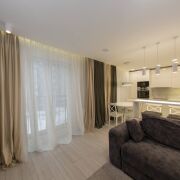 Планировка: 2 раздельные комнаты, раздельный с/у с ванной и душем, кухня-гостиная. Полностью укомплектована техникой: холодильник, стиральная машина,, сушильная машина, посудомоечная машина, варочная панель, духовой шкаф, вытяжка, свч, кондиционер, встроенная акустика, скоростной интернет.