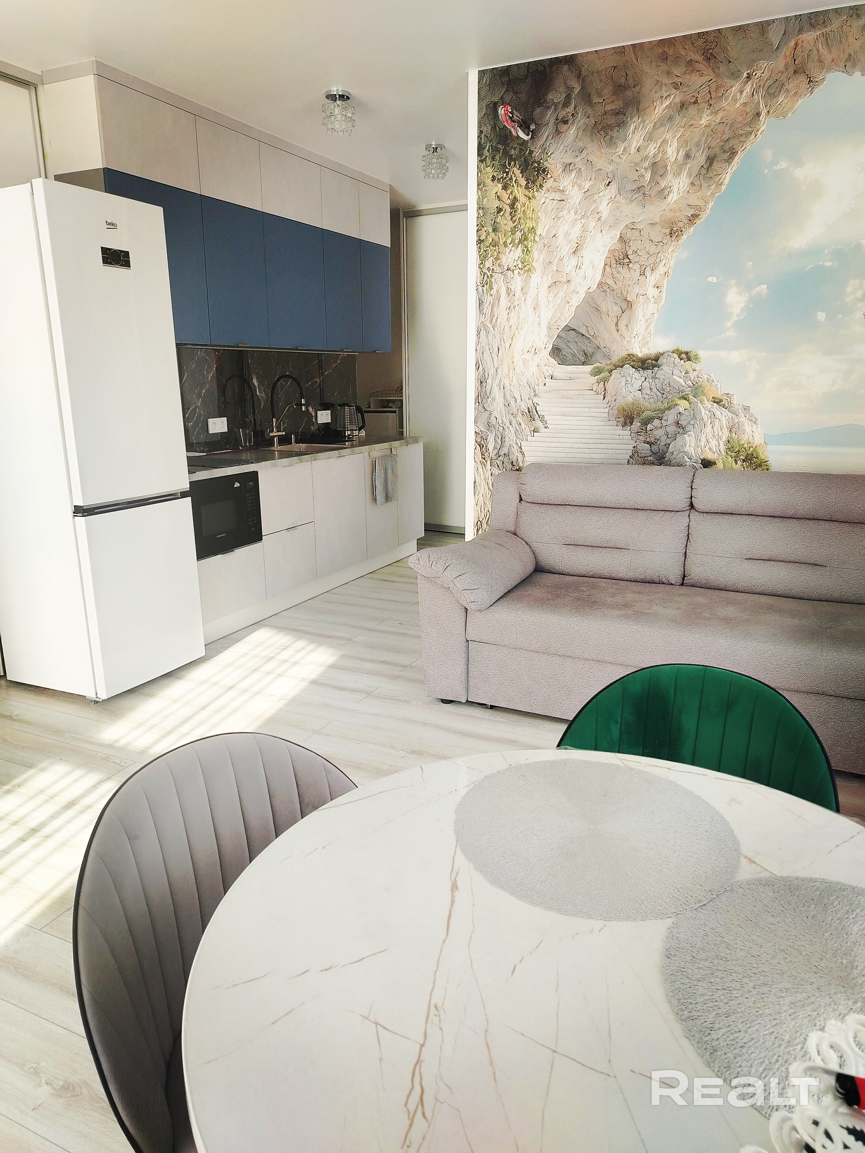Просторная и светлая Квартира с двумя отдельными комнатами, гостиной с кухней, совмещенный санузел с душевой, гардеробная. Выполнен дизайнерский ремонт, вся мебель новая, техника, спальные, кухонные и банные принадледности, всё необходимое для уборки квартиры - всё новое. В наличии посуда, приборы, чайник. Сдача от 1 месяца и на длительный срок семье, парам. Без животных пожалуйста)