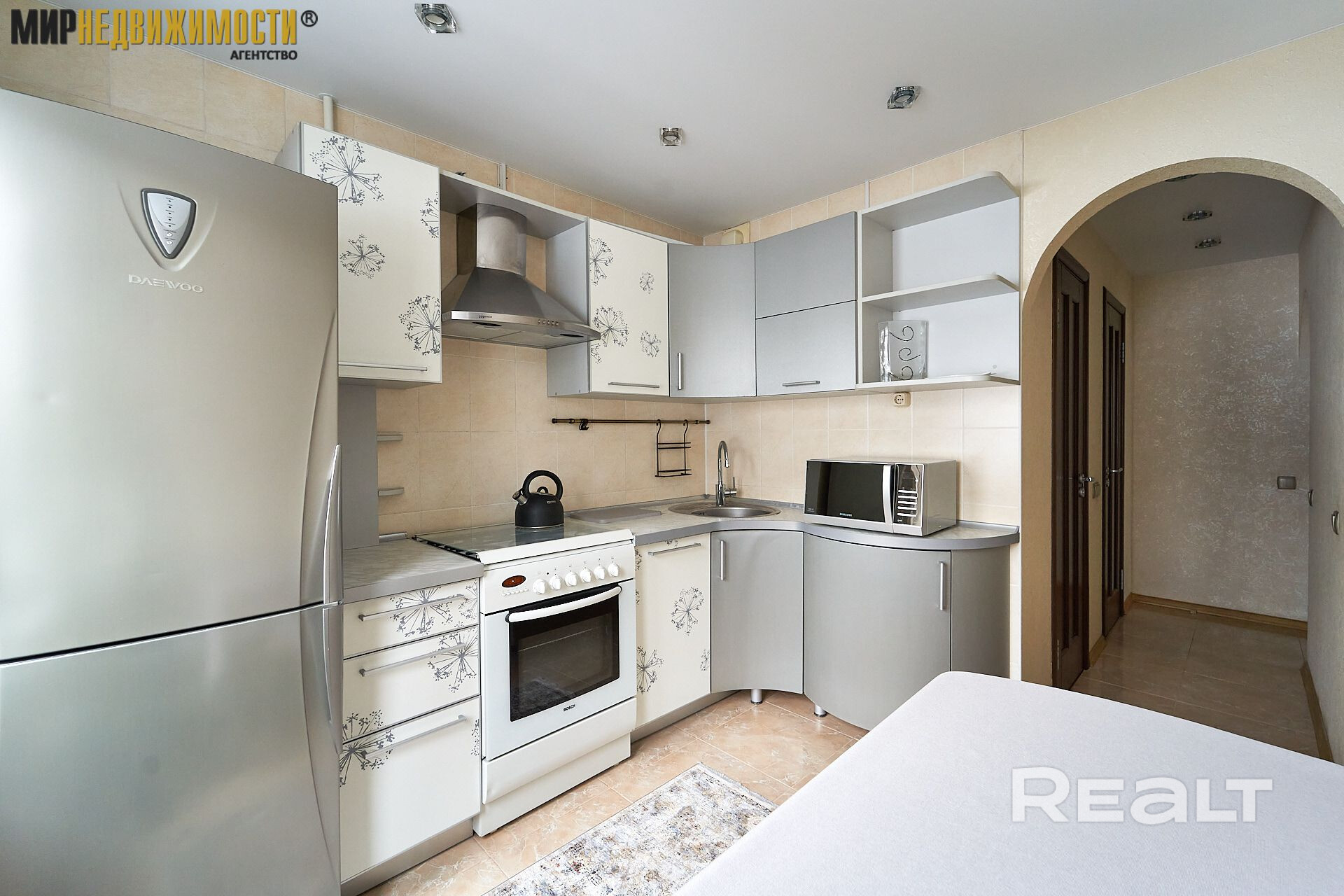 Полностью оборудована всей необходимой мебелью и техникой. Раздельный санузел. Застекленная лоджия. Много продуманных мест хранения.