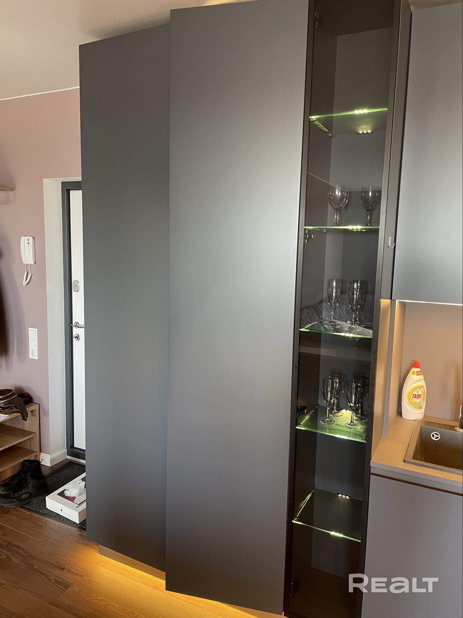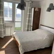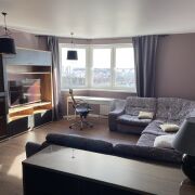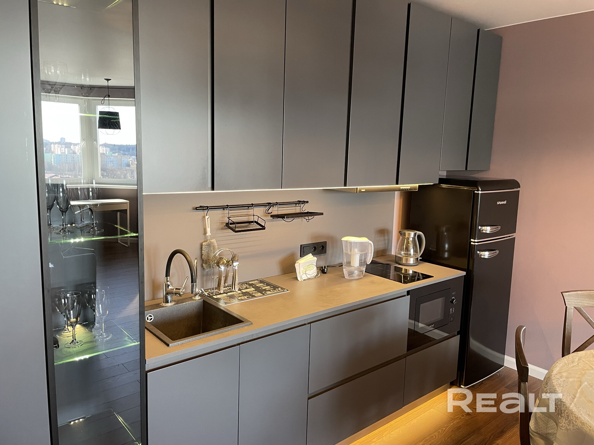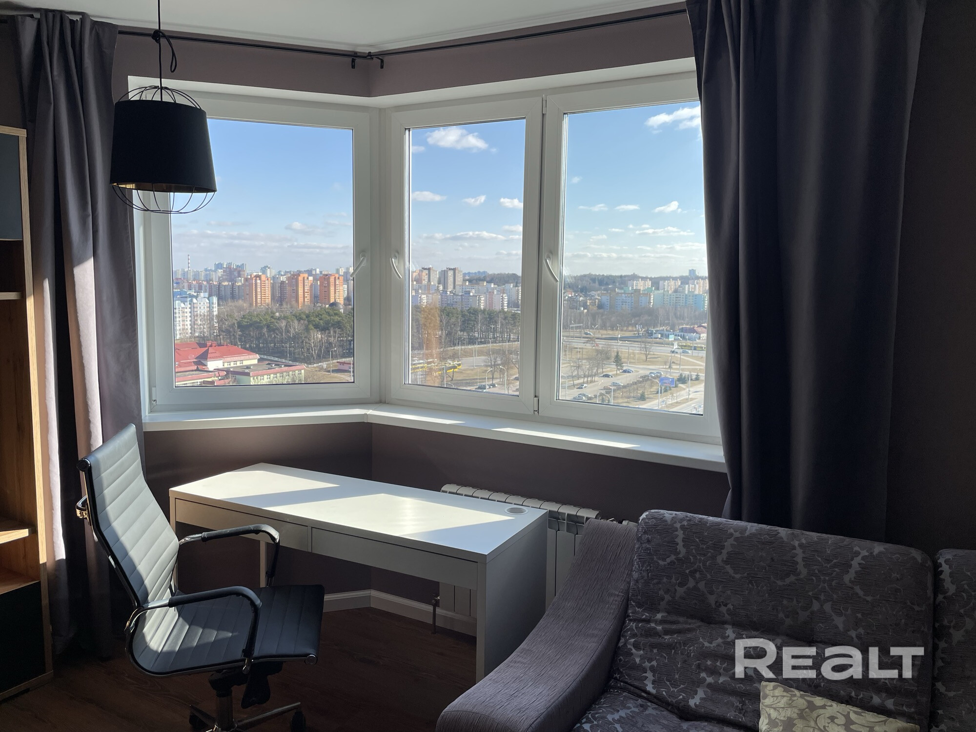 На длительный период сдается просторная 2-комнатная квартира общей площадью 55 м2, жилой с кухонным оборудованием на 16-м этаже 22-этажного каркасно-кирпичного дома 2019 года постройки на улице Нарочанская, 4. - Удачная планировка: большая кухня-гостиная, компактная спальня и раздельный санузел. Кухня-гостиная площадью 32.5 м2 обустроена всей необходимой мебелью (встроенный кухонный гарнитур, диван) и техникой (холодильник, варочная панель, духовой шкаф, микроволновая печь, вытяжка); - Встроенны