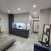 Квартира-студия 30 м2 от собственника со всем необходимым во время аренды. Двуспальная кровать 160х200см с ортопедическим матрасом и двуспальный диван 140х200см. Вид на город с 14 этажа. Ⓜ️метро "Аэродромная" 500м. без животных курение запрещено