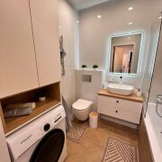В квартире есть все необходимое для вашего комфортного проживания: кондиционер, посудомоечная машина, духовой шкаф, свч-печь, варочная панель, стиральная машина, проточный водонагреватель, телевизор, холодильник, столовые приборы, посуда, сервиз, утюг, пылесос, гладильная доска, сушка, все для уборки квартиры, кастрюли и сковородки, полотенца, комплект постельного белья и подушек, высокоскоростной интернет. 2 вместительные гардеробные.