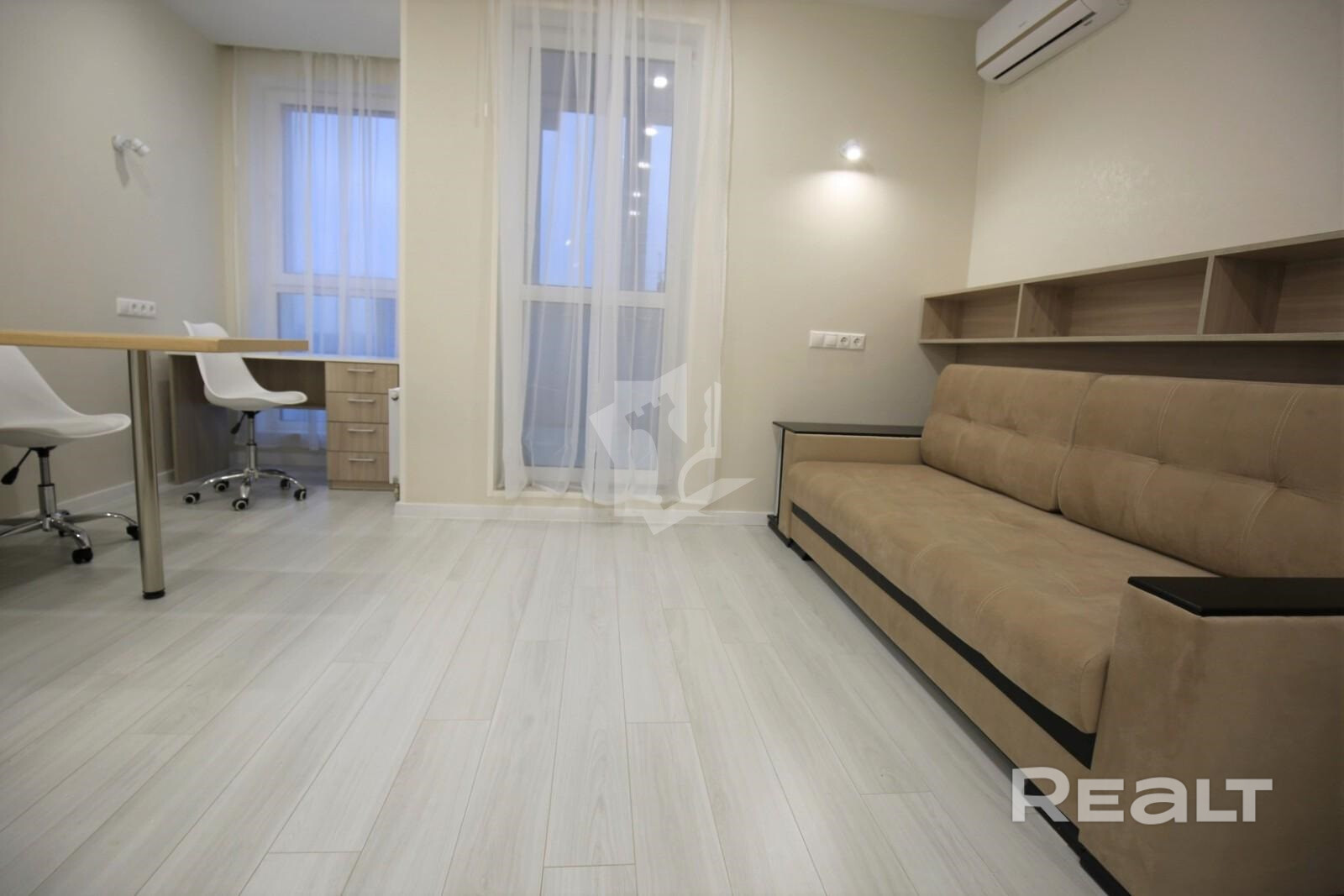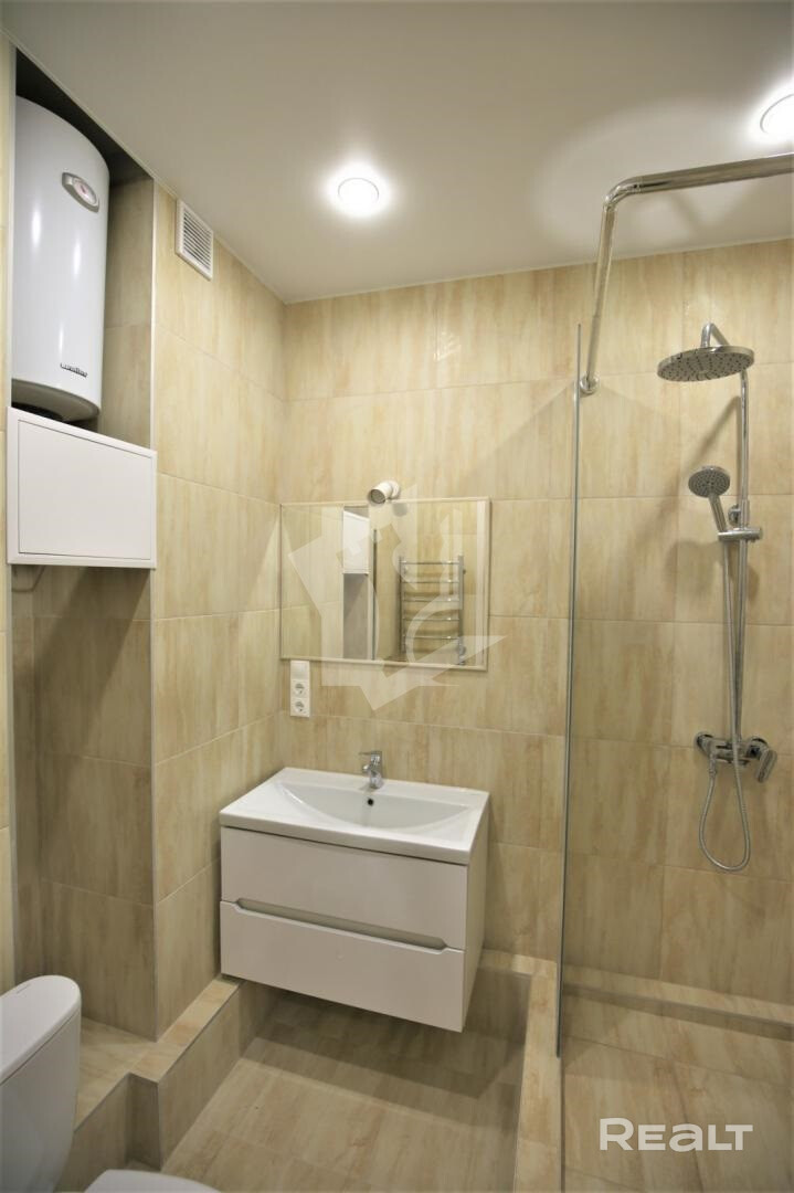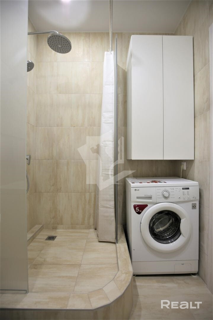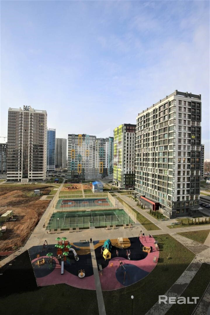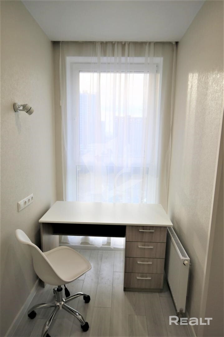 Сдается однокомнатная квартира-студия в ЖК «Минск Мир». На окнах – стеклопакеты из ПВХ. Квартира укомплектована всей необходимой мебелью и бытовой техникой: холодильник, телевизор, стиральная машина автомат, печь СВЧ, бойлер, кондиционер, электроплита индукционная, электрочайник.