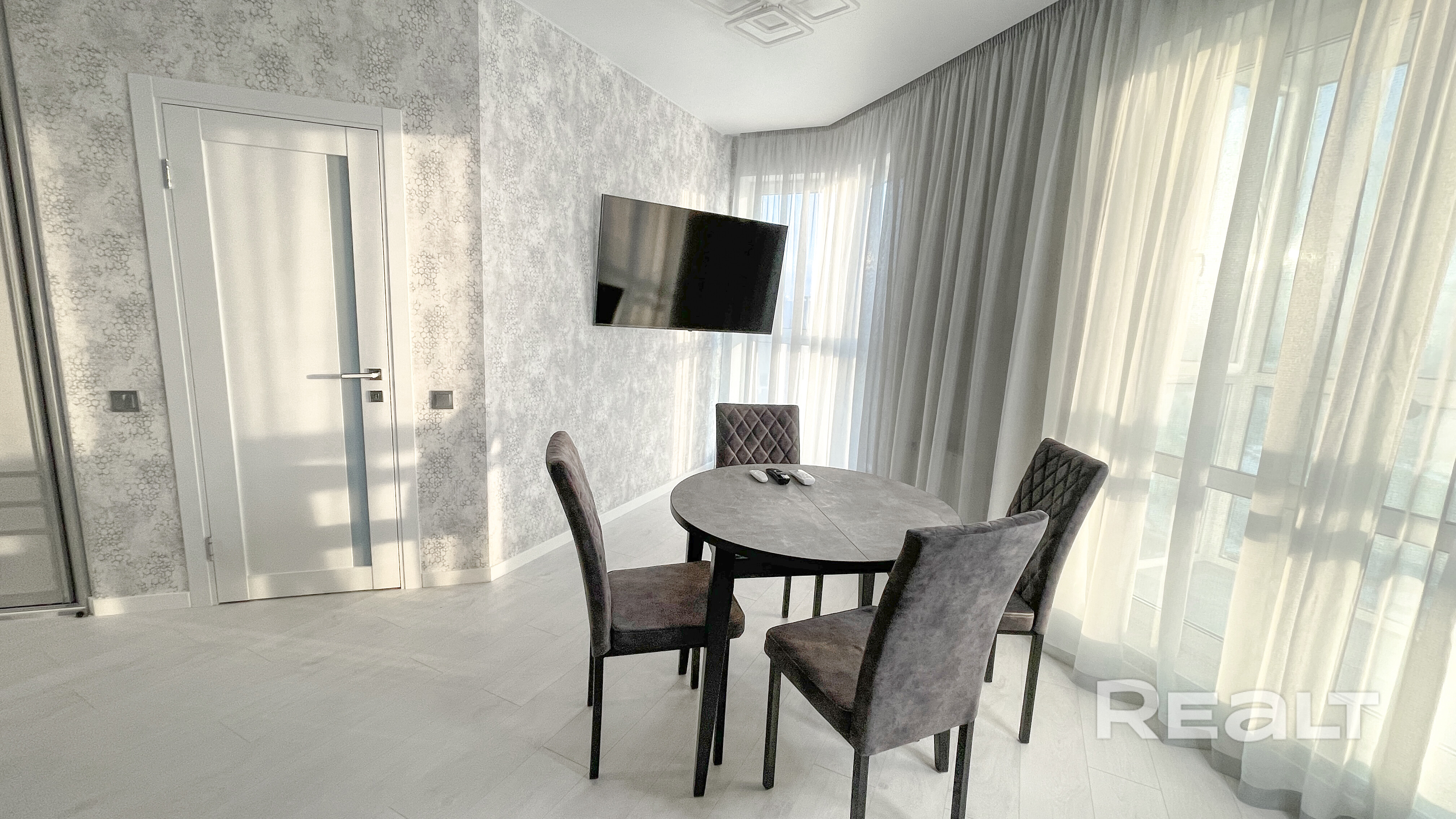Сдается евродвушка в новом доме. В квартире сделан новый дизайнерский ремонт, новая мебель и техника, высокоскоростной интернет, кондиционер. Дом находится прямо у выхода из метро Грушевка. С 19-го этажа открывается шикарный вид на вечерний Минск. Отличная локация со всем необходимым прямо у дома (магазины, кафе, садики, школы, аптеки, банки). Заезд во двор под шлагбаум. Есть возможность арендовать место в подземном отапливаемом паркинге. Сдача на долгосрочный период. Договор, залог.