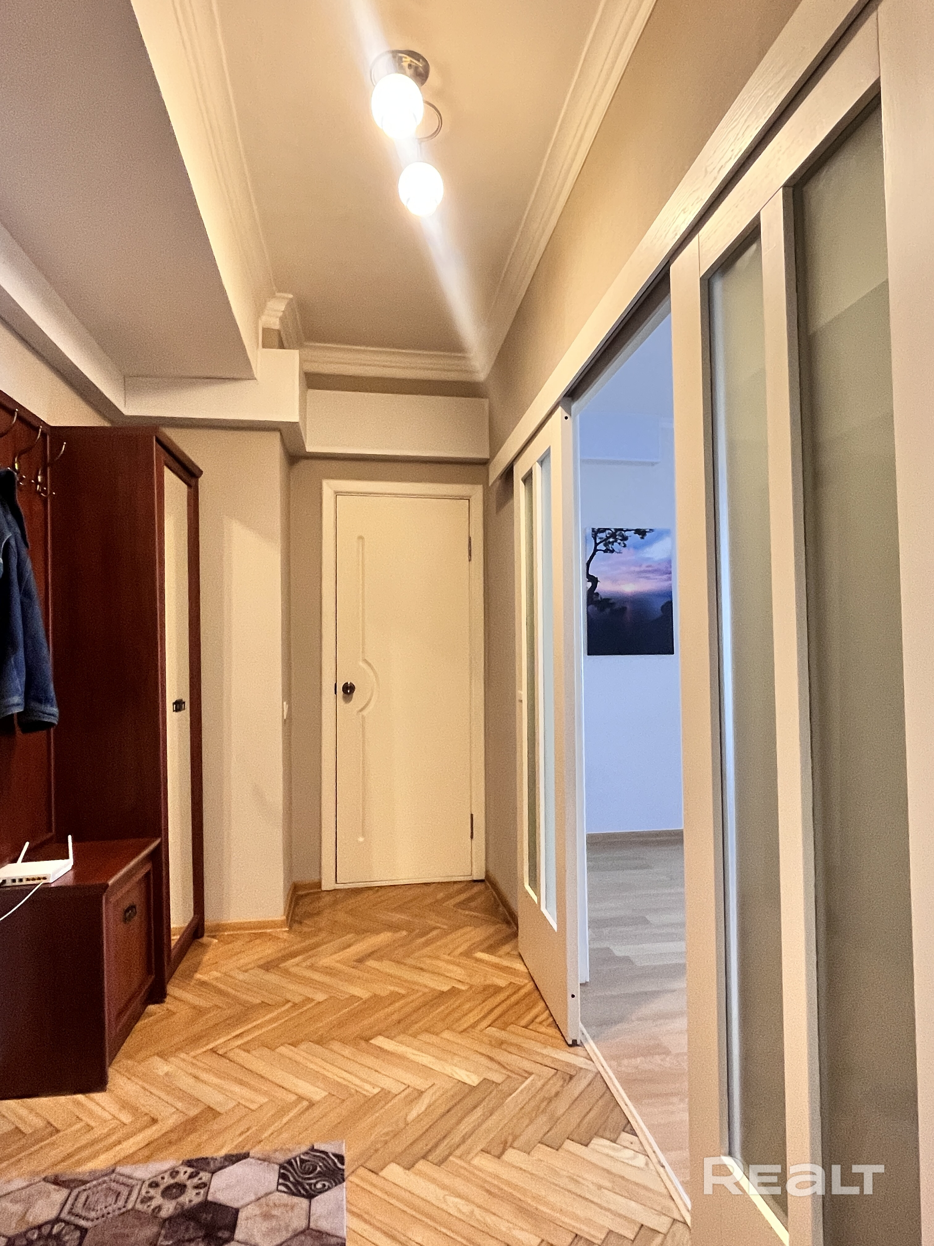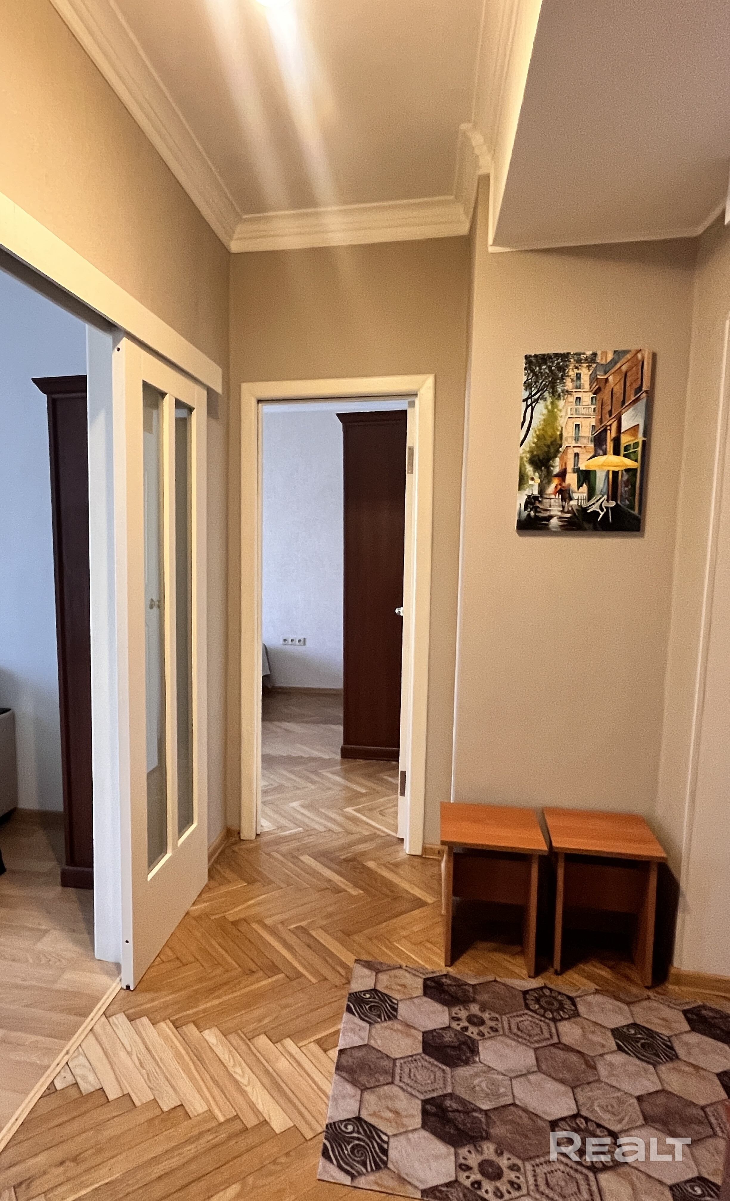 Уютные апартаменты рядом со станцией метро «Парк Челюскинцев» Современные и светлые апартаменты расположены в одном из самых зелёных районов Минска, всего в нескольких минутах ходьбы от метро «Парк Челюскинцев». В пешей доступности — рестораны грузинской, европейской и белорусской кухни, а также несколько уютных кофеен. Всего за 5 минут вы сможете дойти до Парка Челюскинцев — идеального места для утренних пробежек, спокойных прогулок или отдыха на свежем воздухе. Доступна бесплатная парковка.