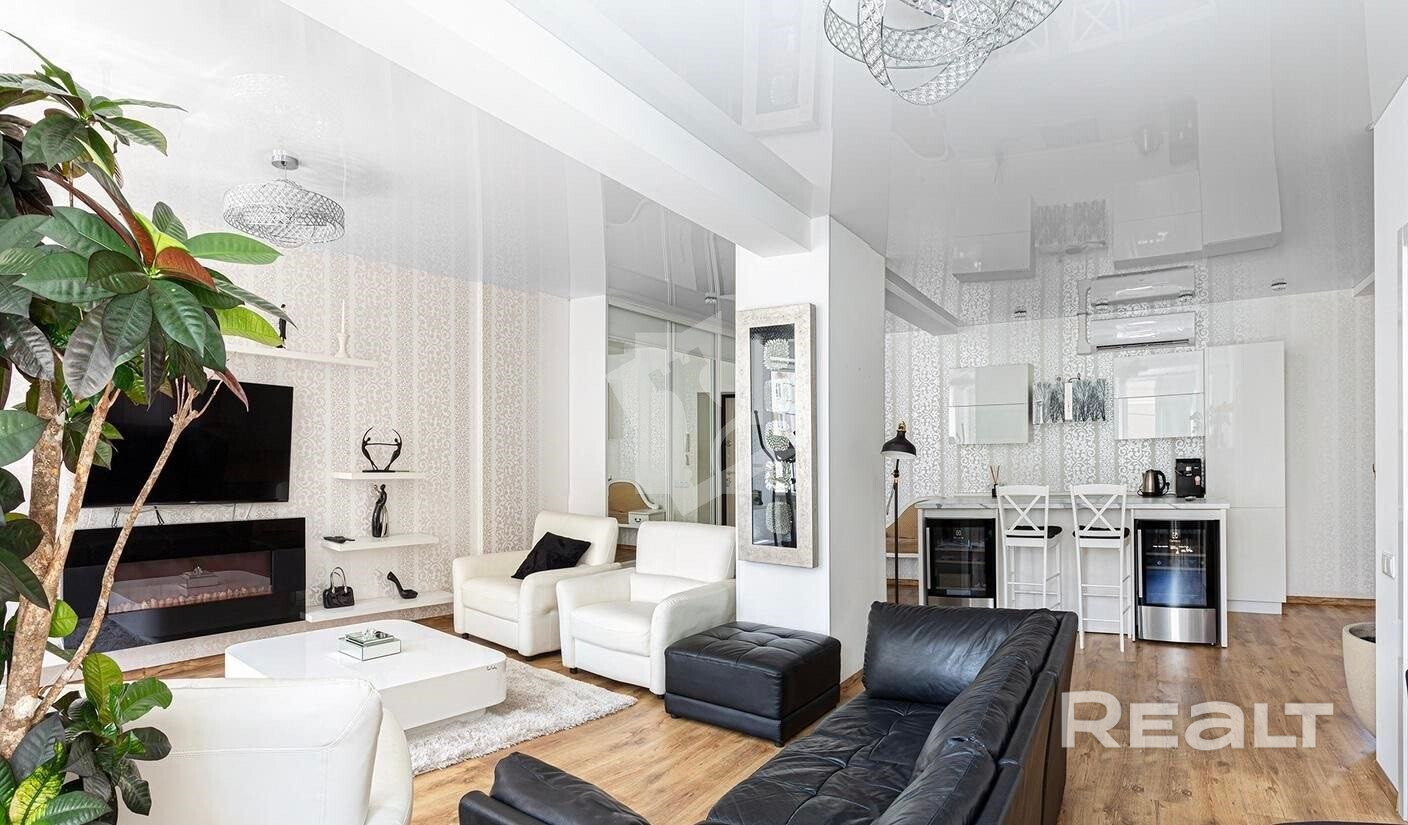 Сдается просторная двухкомнатная квартира-студия общ. площадь 86 м2. Дизайнерский ремонт с использованием качественных материалов. В квартире есть абсолютно все для комфортного проживания, от мелкой бытовой техники до посуды и столовых приборов. Два шкафа для хранения вина. Два тренажера, беговая дорожка и эллиптический тренажер. Сдается на длительный срок. Очень тихие соседи.