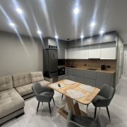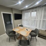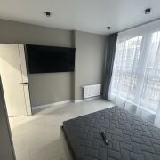 НОВАЯ четырехкомнатная квартира с первым ремонтом, обставленная новой мебелью и техникой. Одну комнату можно оборудовать на усмотрение квартиросъемщиков под кабинет либо еще одну спальню. В каждой комнате французские окна в пол с выходом на лоджию.