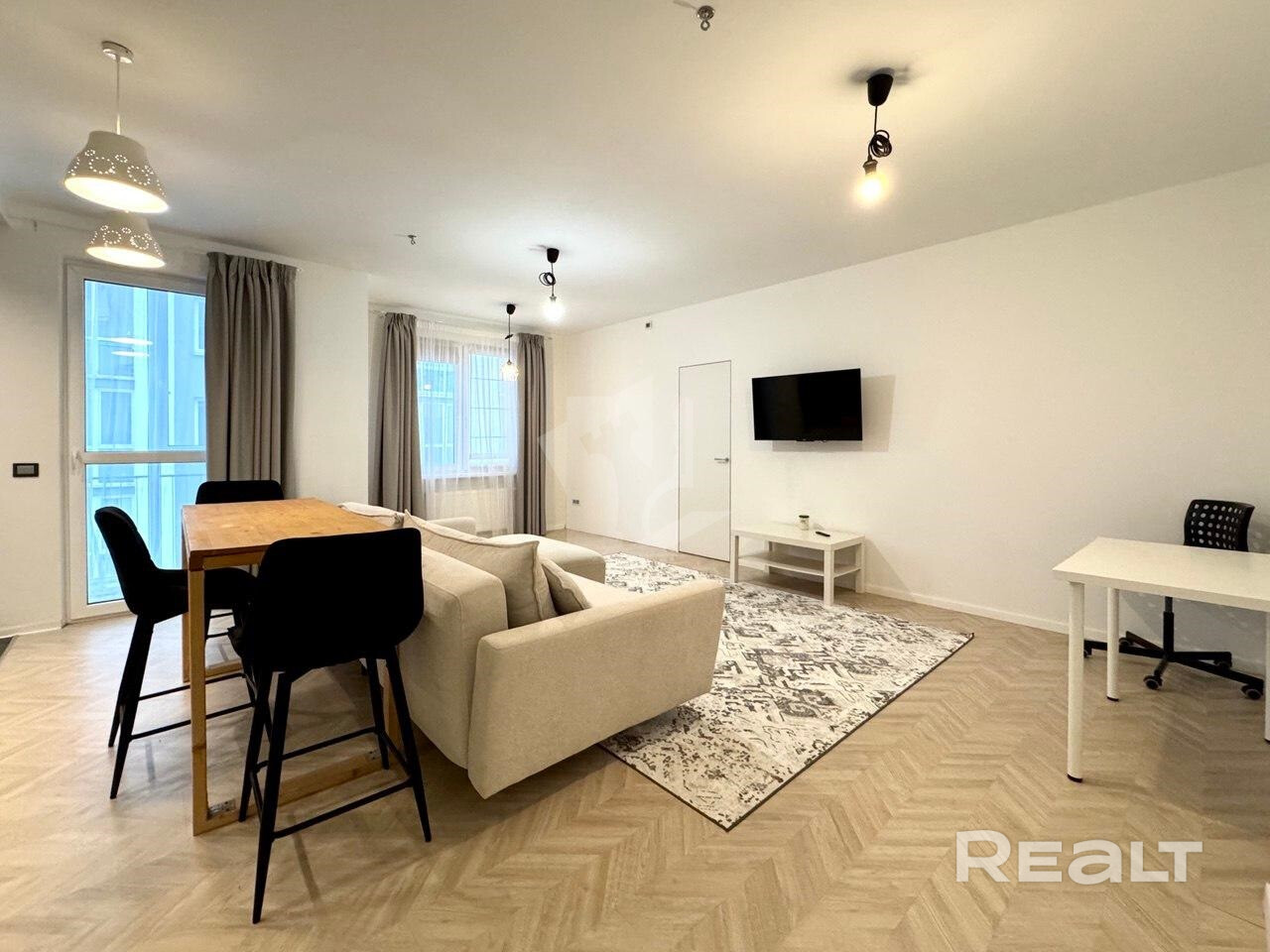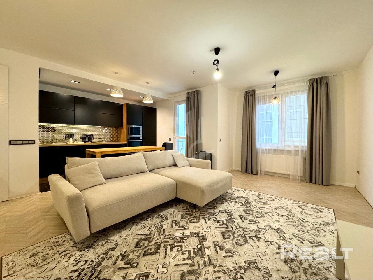 Сдаётся большая, светлая и уютная квартира в ЖК "Маяк Минска" по адресу: Кирилла Туровского 20! Квартира расположена на 10 этаже 20 этажного дома, укомплектована мебелью и техникой для комфортного проживания (в том числе посудомоечной машиной, бойлером, кондиционером, тёплыми полами и т.д.).