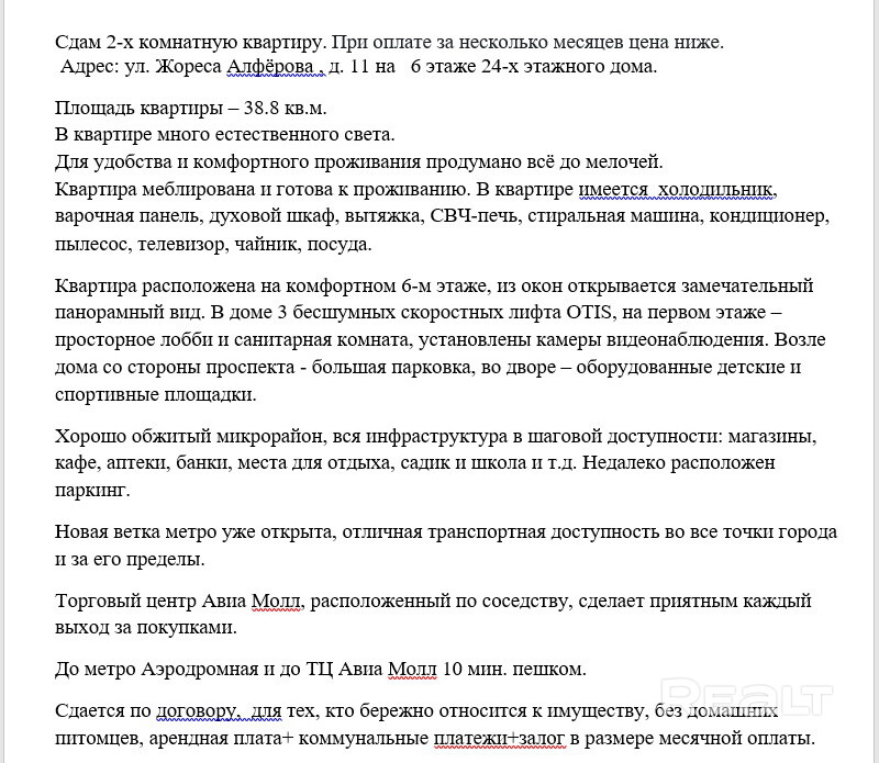 Сдам 2-х ком.кв по ул. Ж. Алфёрова , д.11 на 6 этаже .При оплате за несколько месяцев цена ниже. Квартира меблирована и готова к проживанию. В квартире имеется холодильник, варочная панель, духовой шкаф, вытяжка, СВЧ-печь, стиральная машина, кондиционер, пылесос, телевизор, чайник, посуда. До м. Аэродромная и до ТЦ Авиа Молл 10 мин. пешком. Сдается по договору, для тех, кто бережно относится к имуществу, без питомцев, арендная плата+ коммунальные платежи+залог в размере месячной оплаты
