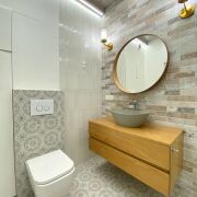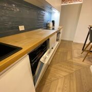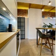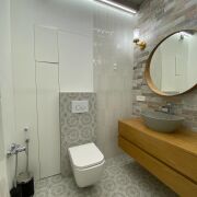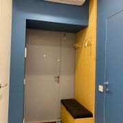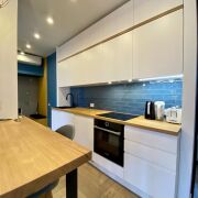 В квартире сделан дизайнерский ремонт под себя и продуман до мелочей: встроенная кухня с барной стойкой , переходящая в зал, рабочее место с монитором Apple и выходом на балкон, спальня с двуспальной кроватью и просторной гардеробной, санузел совмещенный, прачечная и гардеробная .