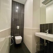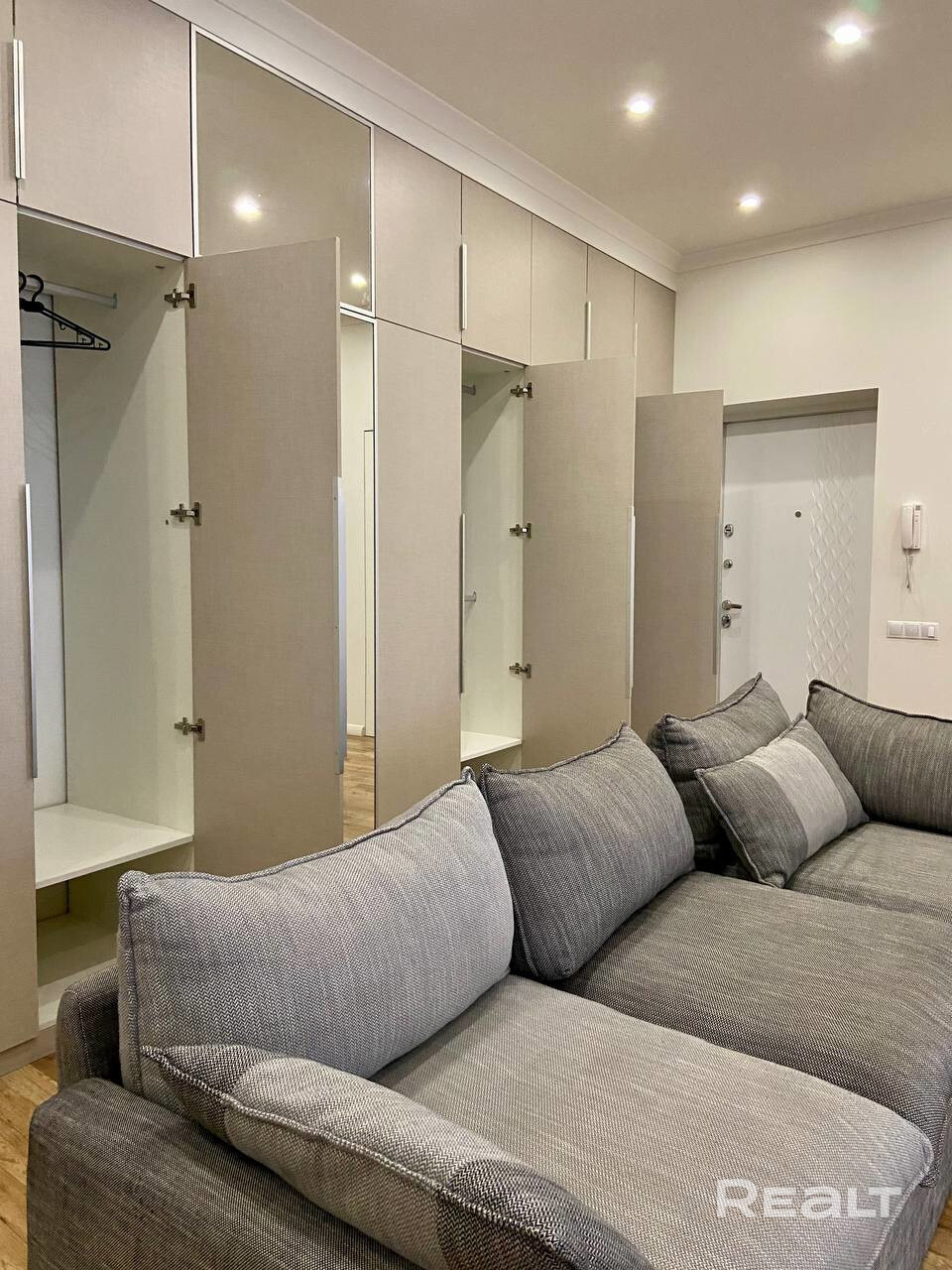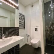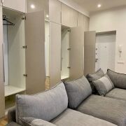 В квартире 2 раздельные комнаты с двуспальными кроватями, просторная кухня-гостиная, 2 санузла с душевой кабиной и ванной, множество систем для хранения, есть прачечная комната.