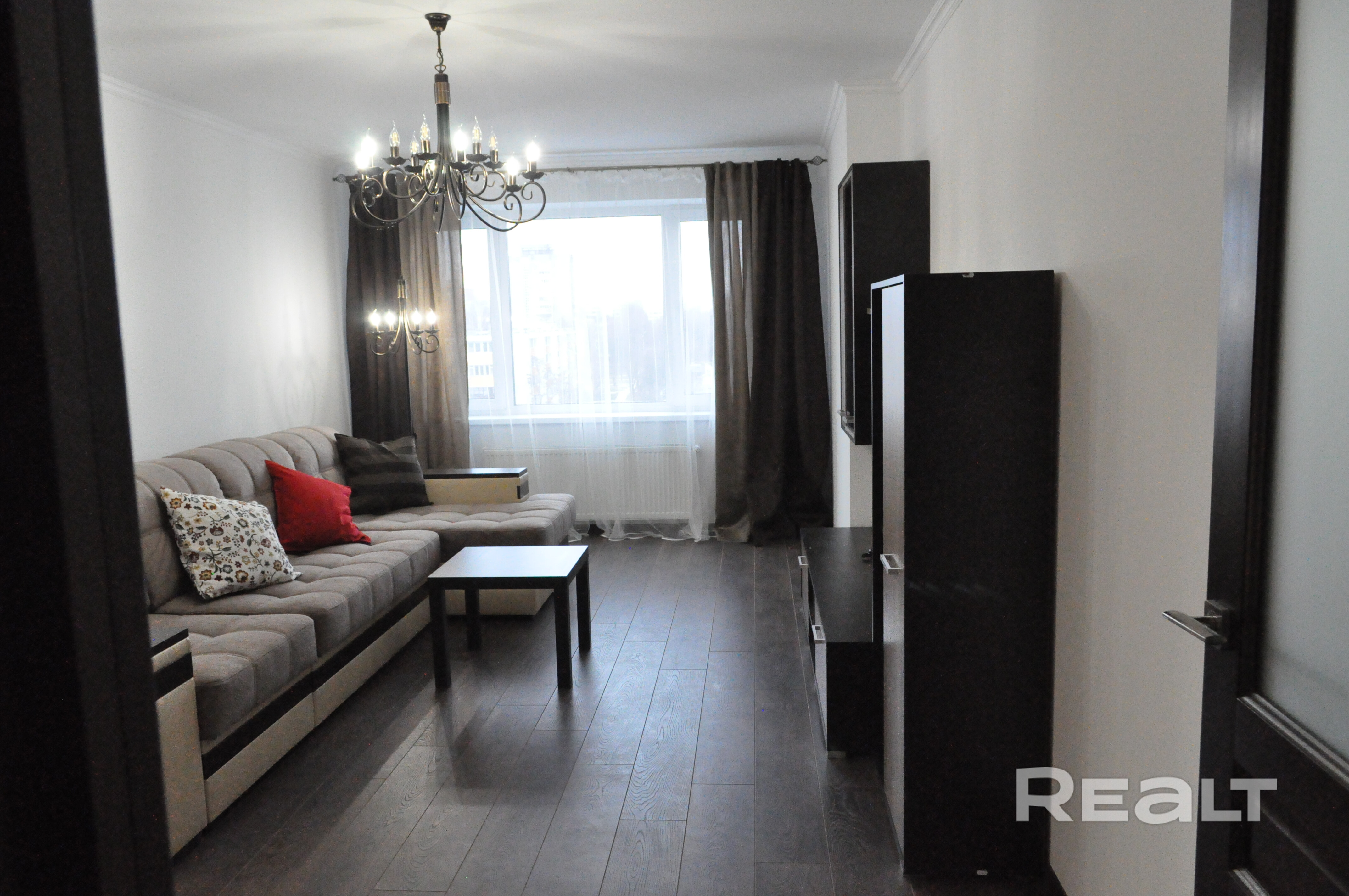 Сдаётся хозяйкой в центре просторная 2 ком кв с гардеробной ком в новом доме, шаговоя доступность метро 5-9 минут. Комн на 2 стороны, спальня солн. Отличный ремонт. Стеклопакеты, вх. метал. дверь, межком двери натур дерево, счёт воды,тепла, домофон. В квартире всё необходимое для проживания – мебель, быт техника Бош, бойлер, посуда. Две просторные застекленные лоджии. 3 лифта.В шаговой доступности метро, сеть автобусов и троллейбусов, ТРЦ«Тивали», ТЦ«Скала»,Евроопт,MARTINN,Green, Ледовый дворец.