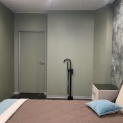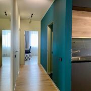Кухня-гостиная и 3 раздельные комнаты : 2 детские(одна с выходом на балкон), хозяйская спальня (с балконом); вместительная гардеробная, санузел с возможностью разделения зон(перегородка раздвижная) с душевой кабиной, 2 балкона.