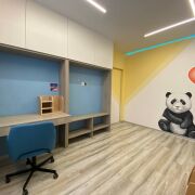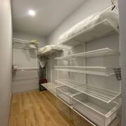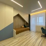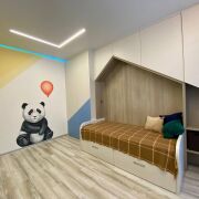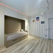 На балконе обустроено рабочее место. Продуманы зоны для хранения вещей: шкафы на входе( по запросу предоставим фото, вместительные и глубокие ниши для хранения), зоны для хранения бытовых принадлежностей в ванной комнате, в каждой детской установлены шкафы встроенные.