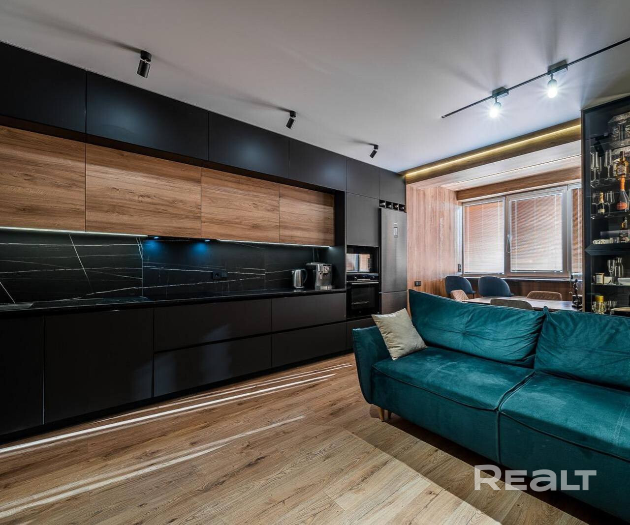 Кухня-гостиная  и 3 раздельные комнаты : 2 детские, хозяйская спальня; вместительная гардеробная, санузел с возможностью разделения зон(перегородка раздвижная), 2 лоджии.