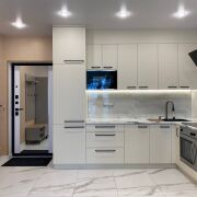 В квартире есть все необходимое для вашего комфортного проживания: свч-печь, духовой шкаф, вытяжка, варочная панель, телевизор, система "теплый пол", стиральная машина, водонагреватель, посудомоечная машина( по запросу).