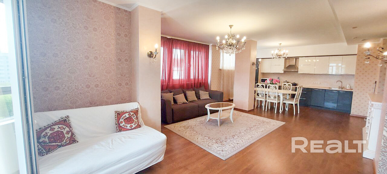 3-х комнатная квартира на пр. Победителей 27, Славянский Квартал. Площадь 85 м2, 7-й этаж 20-этажного дома. Две спальни, гостиная совмещена с кухней, две ванных комнаты с туалетами, ванной и душем. Посудомоечная и стиральная машины, мелкая бытовая техника. Рядом парк, река Свислочь, много магазинов, до метро 5 минут на транспорте. Центр города. Коммунальные платежи оплачивает арендатор.