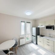 Свежий ремонт. Полная комплектация мебелью. Комната светлая. Французские окна в пол. Солнечная сторона. Кухня с выходом на лоджию.