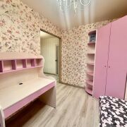 Сан узел раздельный, оборудован современной сан.техникой, мебелью, люки скрытых инженерных систем. В комнате установлен шкаф-купе, гардеробная. Напольное покрытие в комнатах – ламинат . Межкомнатные двери современные аккуратные светлые.