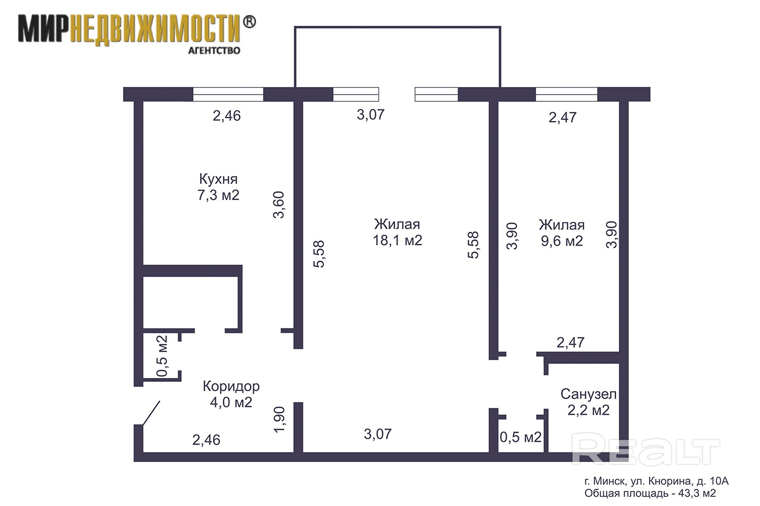 Двухкомнатная квартира в 7 минутах от метро Парк челюскинцев по адресу ул. Кнорина, 10/А