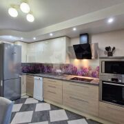 Кухня-столовая — мечта со всей необходимой бытовой техникой: холодильник No Frost, варочная панель, микроволновка с грилем, духовой шкаф, мощная вытяжка, посудомоечная машина, 6-ступенчатая фильтр для воды с осмосом + тёплый пол.