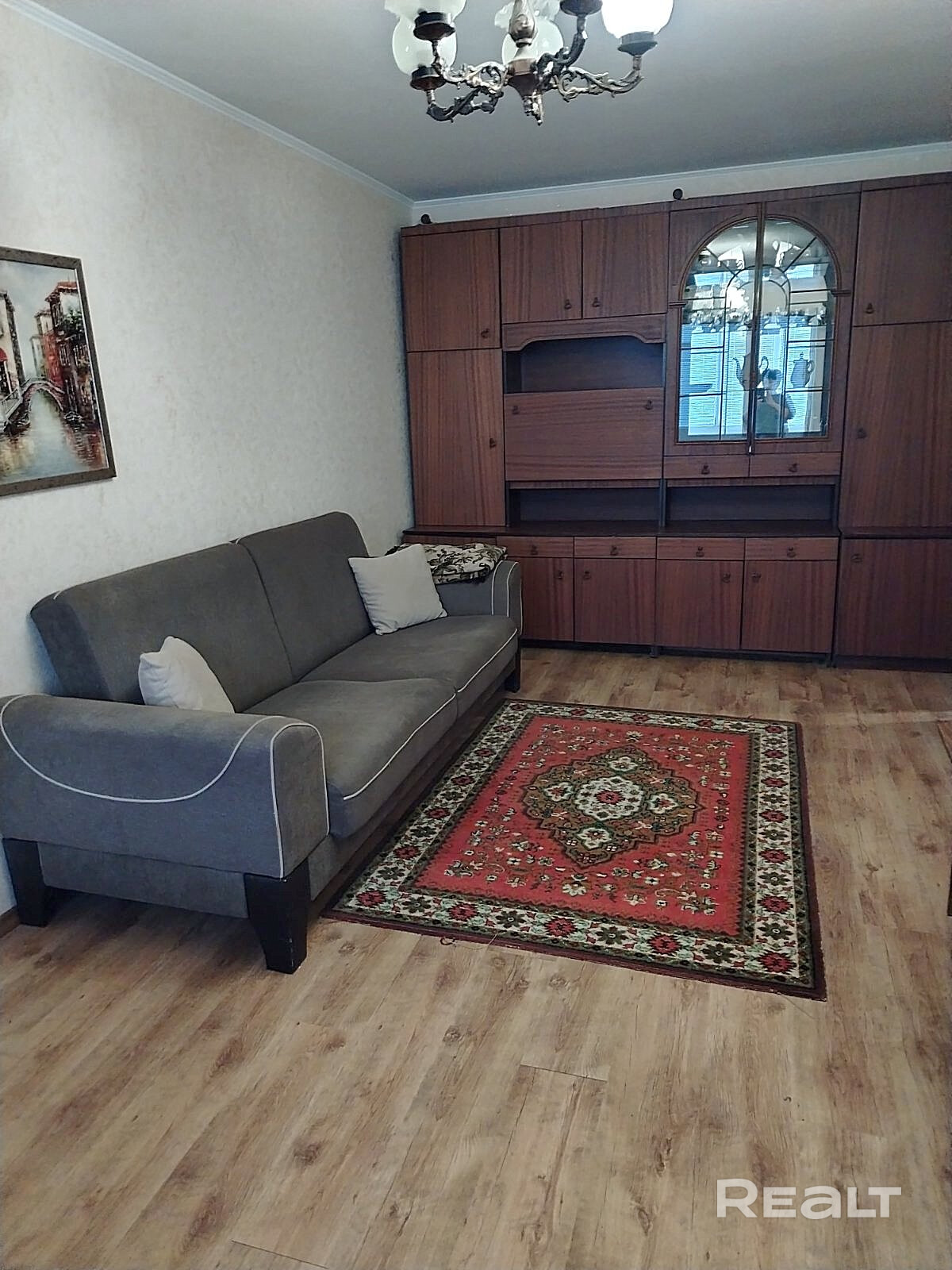 В квартире имеется: диван, шкаф, холодильник, стиральная машинка.
