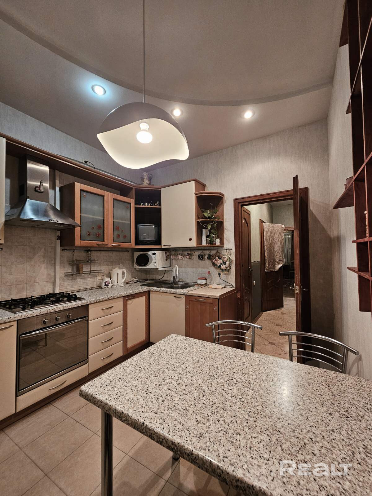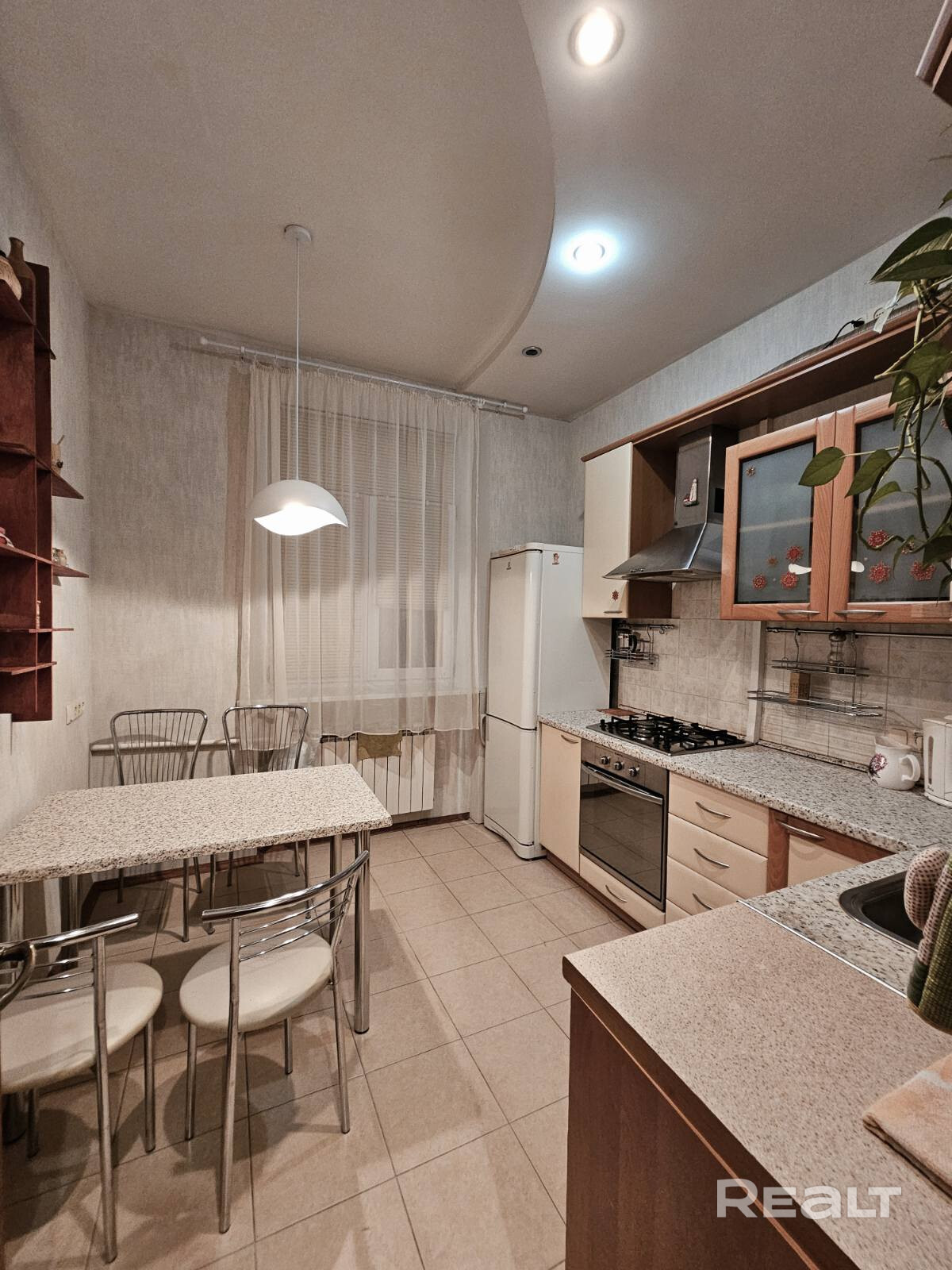 3-х комнатная просторная квартира со всем необходимым для проживания. Сталинка в центре города (дом историко-культурной ценности). Метровые кирпичные стены и потолки 3 метра — гарантия тишины, надежности и пространства. Окна выходят на обе стороны (на проспект и во двор). Всего две квартиры на этаже, 8 квартир в подъезде. Есть прописанные люди. Уникальное расположение: в шаговой доступности метро Якуба Коласа (2 мин пешком), ЦУМ, площадь Победы, парк Горького, лучшие магазины, кафе и рестораны.