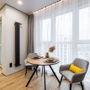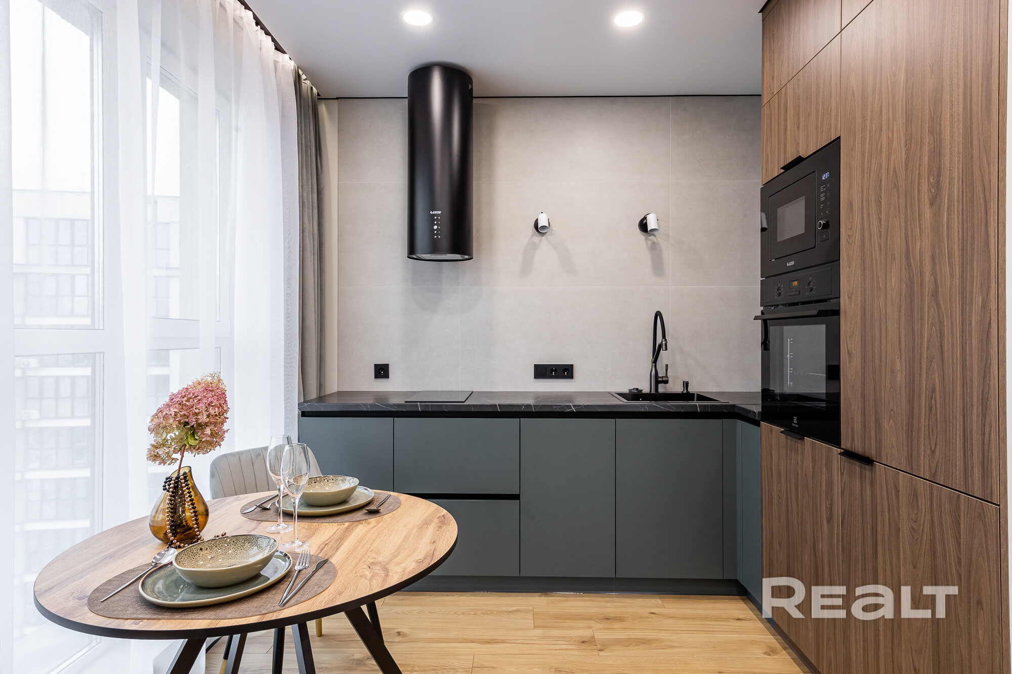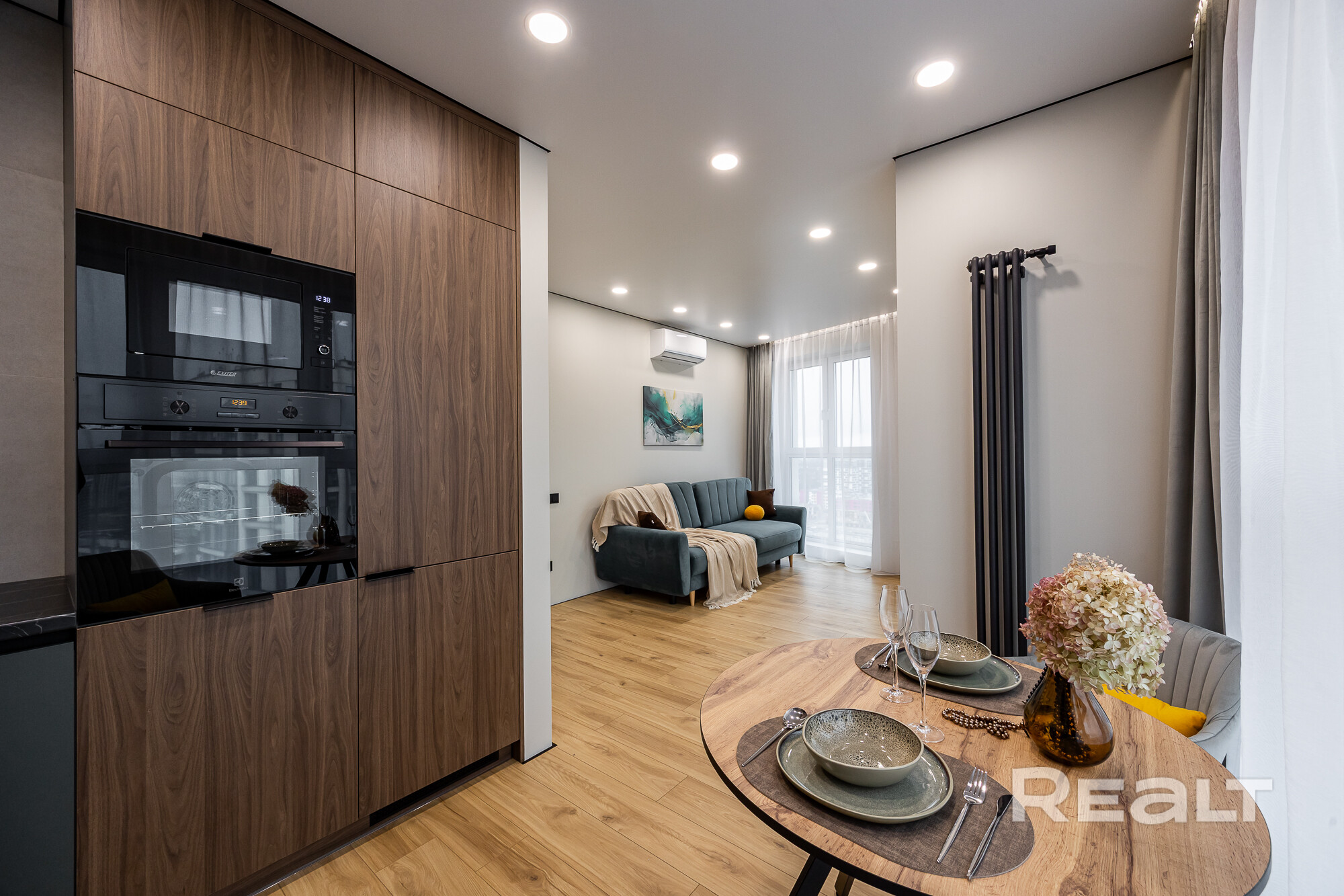 Стильная и уютная квартира с великолепным видом на город.Дизайнерский ремонт,все удобства,кондиционер.Удобное расположение,развитая инфраструктура,в семи минутах Авиа Молл. Первое заселение.