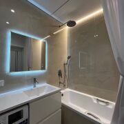 В квартире большое кол-во зон хранения. Разнообразные опции освещения. Есть водонагреватель и кондиционер.