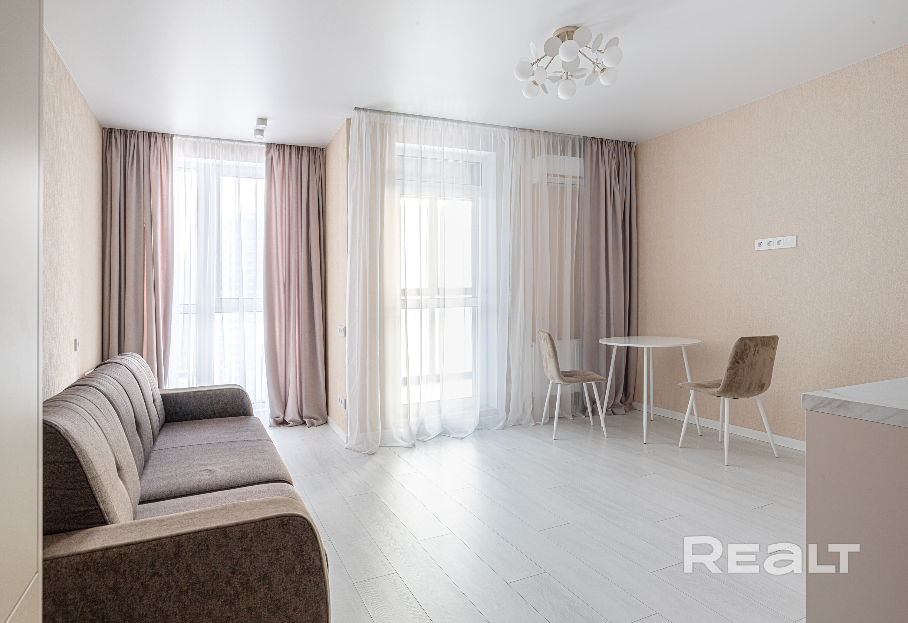 От собственника!!!Современ уютная студия с качест ремонтом.Удобн наземн транспортное сообщение и в шаговой доступности ст м Аэродромн.Планировка и оснащ кварт продум до мелоч для Вашего удобства и комфорта(обои светл беж тона созд тепл атмосф -фото не перед цвет).Окна выход во двор.нет домов "окна в окна".а это тишина в любое время и редкость для "Минск Мир".Сдается на длит срок по догов.предопл за перв мес проживан.залог за сохранность имущества равен сум аренды одного мес.Без животн.Не курящим