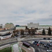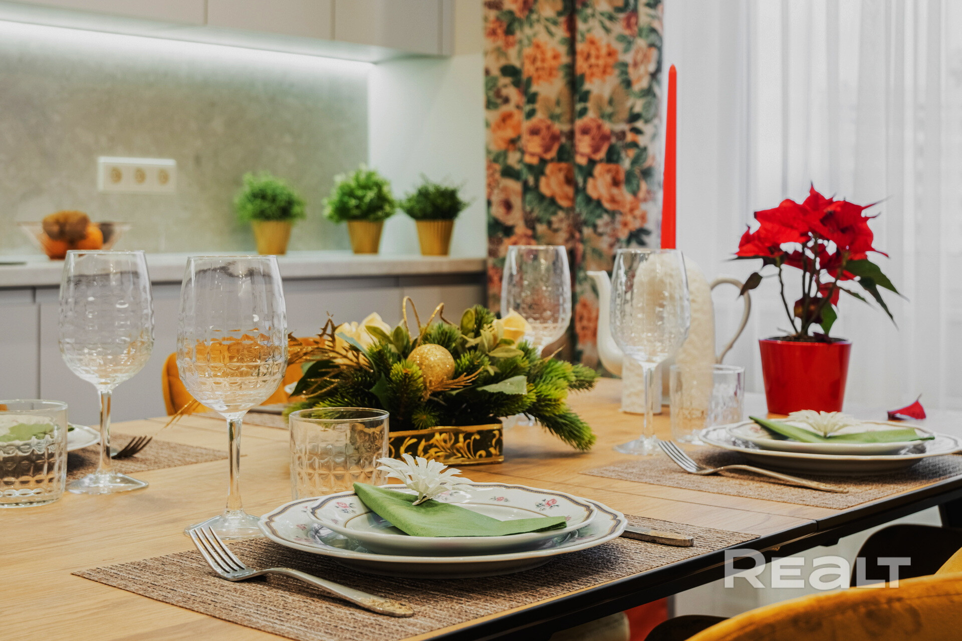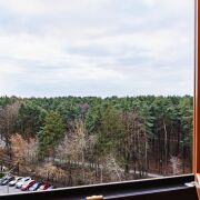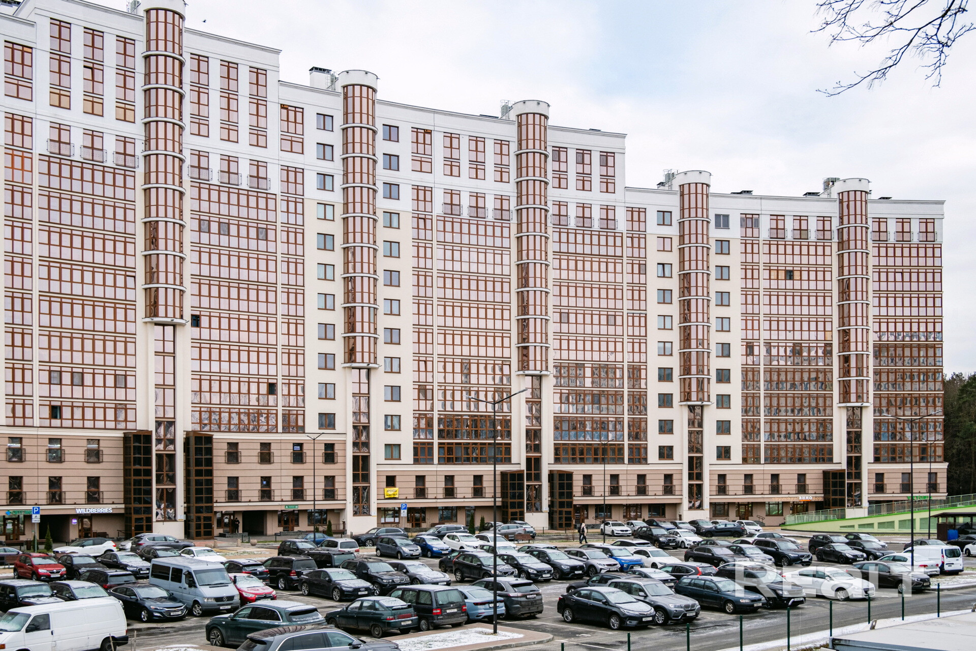 Окна квартиры выходят на две стороны: исторический центр Минска - проспект Независимости и на массив леса в парке Челюскинцев.