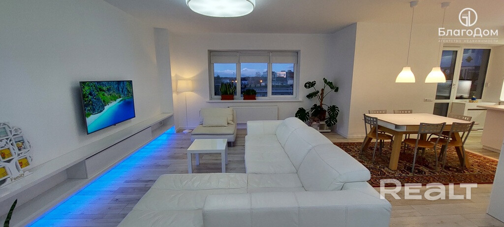 Квартира оснащена всей необходимой мебелью и бытовой техникой: стиральная и посудомоечная машины, микроволновая печь, духовой шкаф, варочная панель, холодильник, телевизоры (SMART TV, интернет), кондиционер.