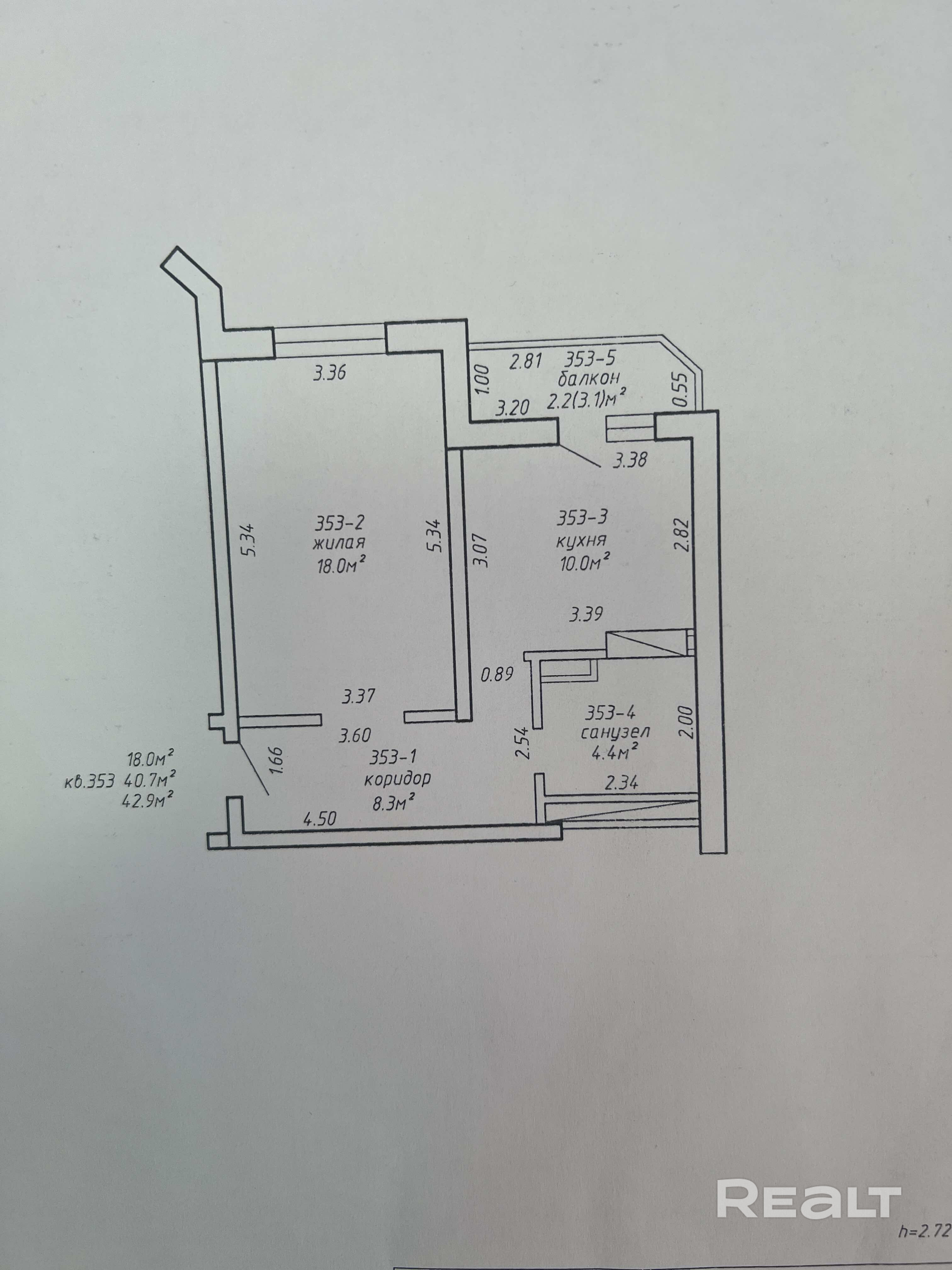 42.9 м²