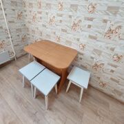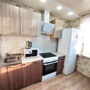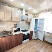 Имеется 4 спальных места (две кровати и раскладывающийся диван), холодильник, стиральная машина, телевизор шкаф-купе, кухонный гарнитур и др.