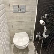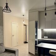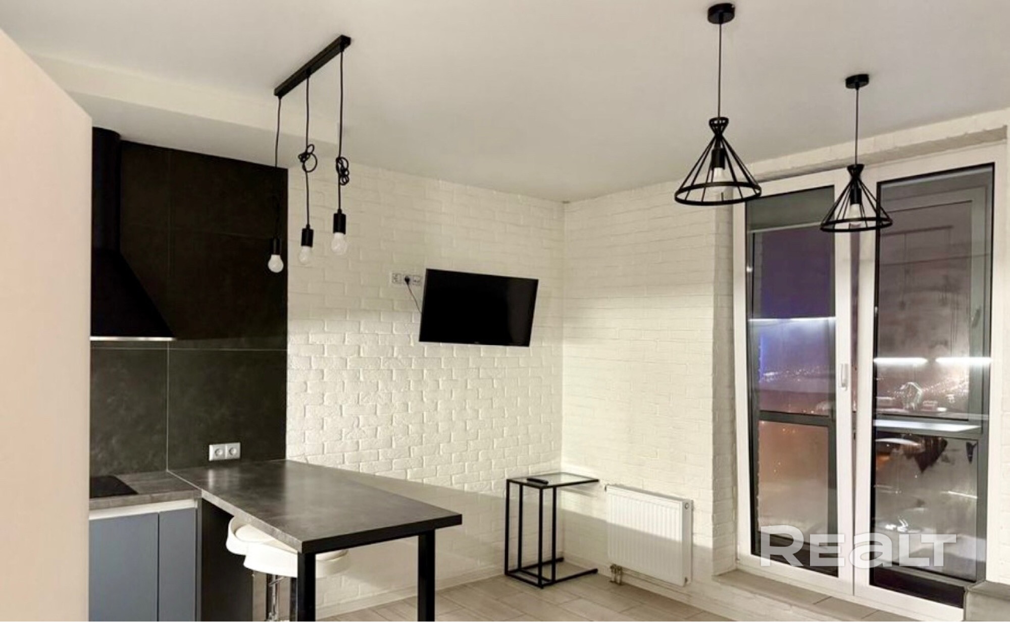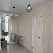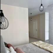Квартира студия с современным ремонтом. Квартира уютная, комфортная, светлая. Гардеробная. Важный момент, в комнату спальни нет двери. Все общее пространство отгорожено стеной.