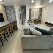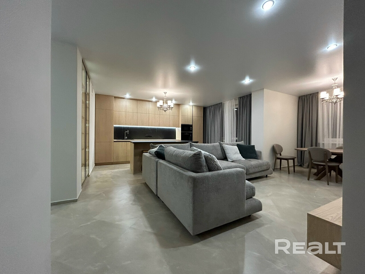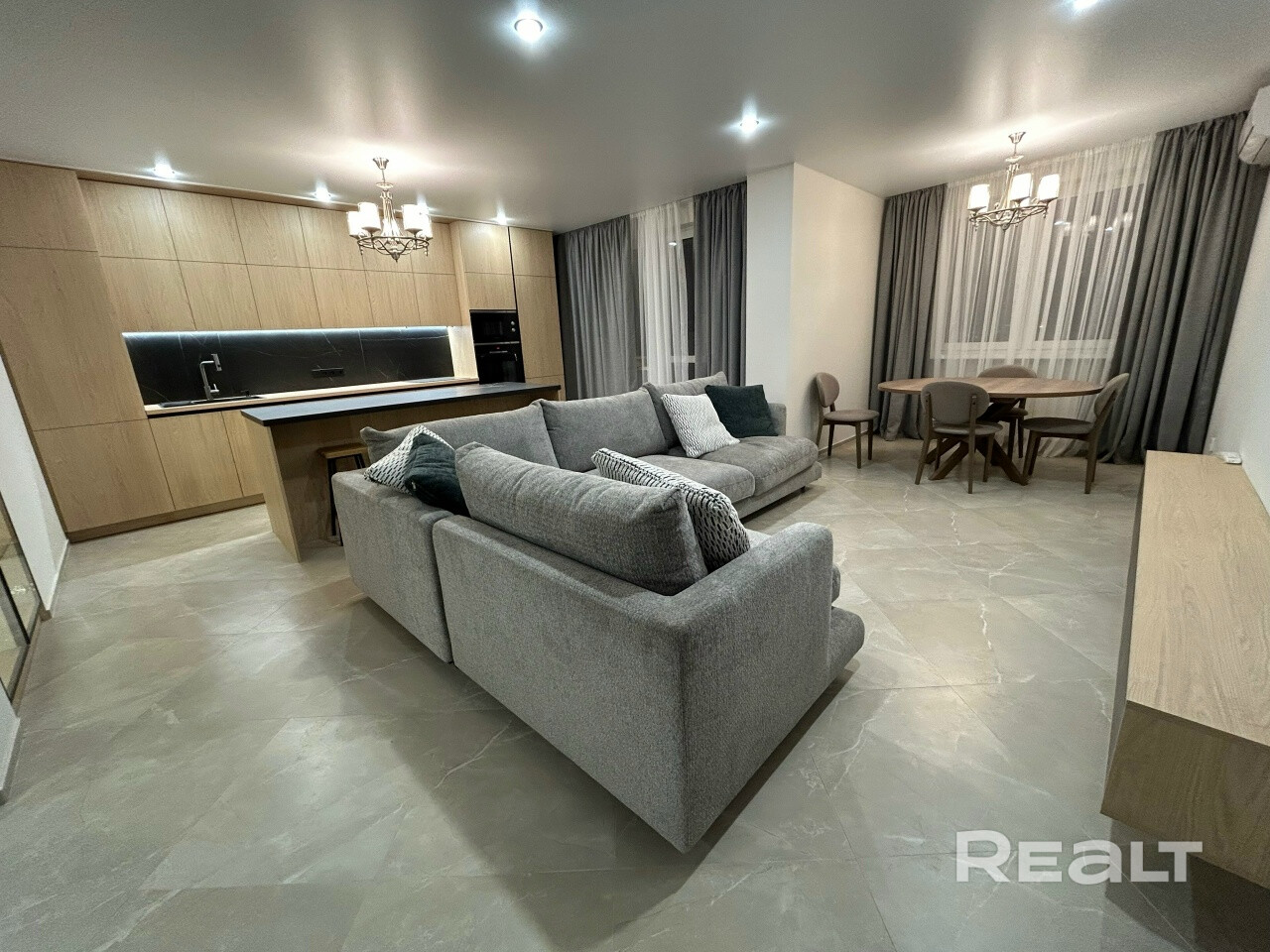 Первая сдача! Только закончен ремонт. Предлагаем вашему вниманию просторную (около 120 метров) и светлую 3-комнатную квартиру-студию. Гостиная, совмещенная с кухней, 2 отдельные спальни и большая гардеробная. В квартире есть все необходимое для комфортного проживания, сдаем на длительный срок. Депозит в размере месяца. Высокий 20 этаж. Современный развивающийся район города с развитой инфраструктурой, удобное транспортное сообщений. Торговый центр, магазины, кафе, парковая зона.