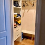 Однокомнатная квартира современной планировки с большой кухней, коридором и гардеробной.